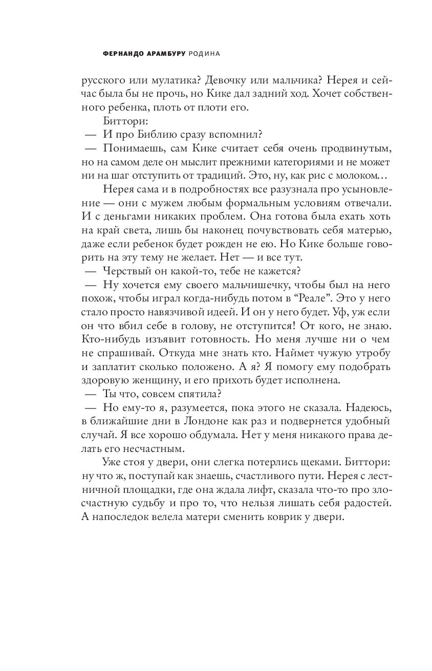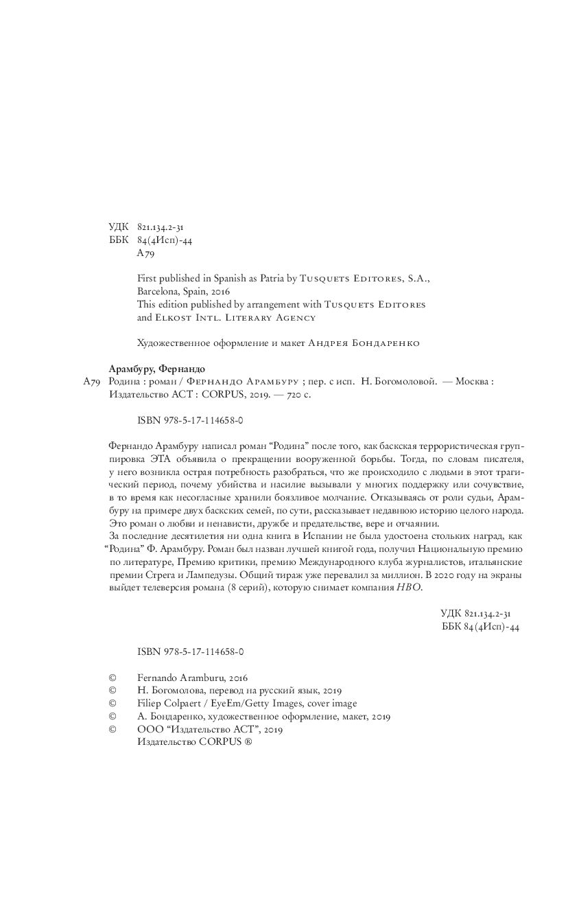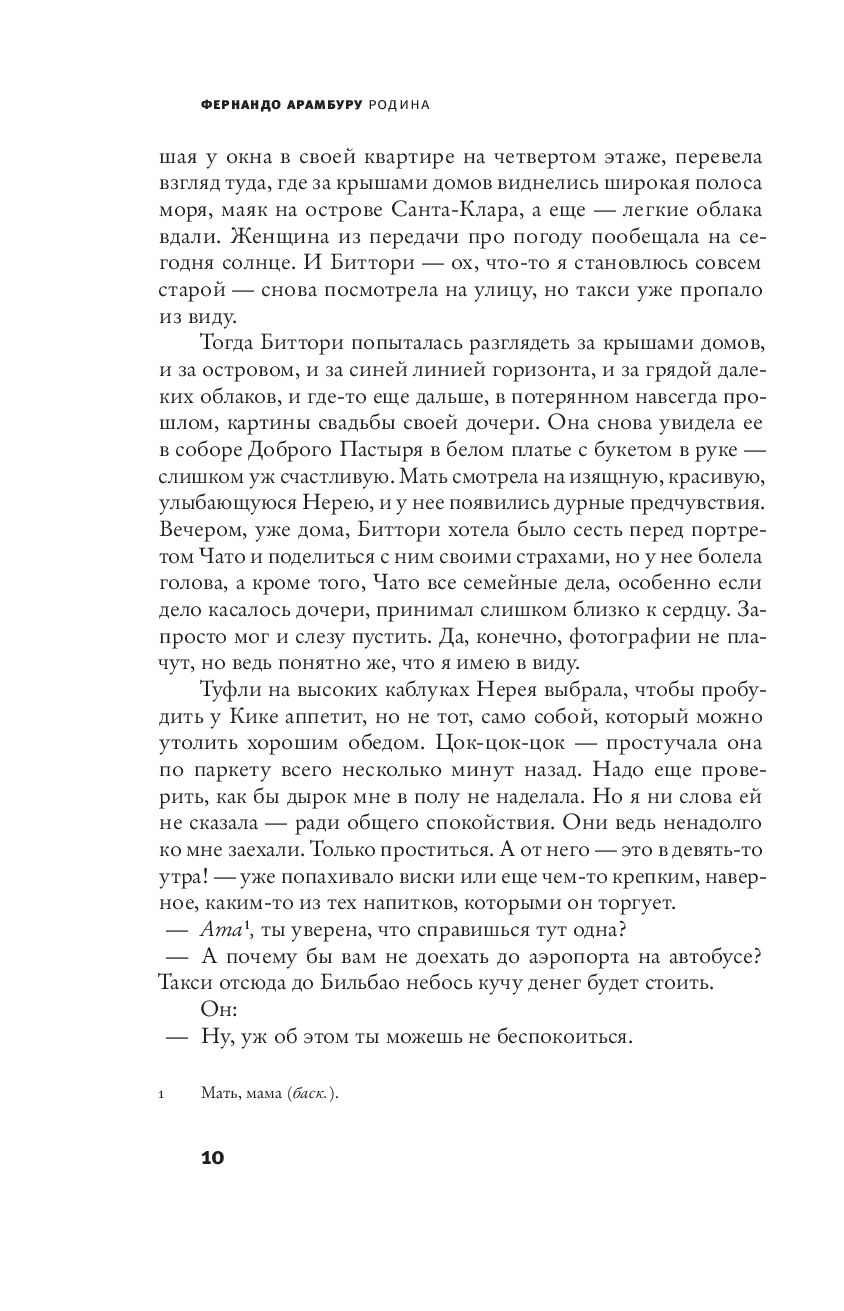 Фернандо Арамбуру написал роман "Родина" после того, как баскская террористическая группировка ЭТА объявила о прекращении вооруженной борьбы. Тогда, по словам писателя, у него возникла острая потребность разобраться, что же происходило с людьми в этот трагический период, почему убийства и насилие вызывали у многих поддержку или сочувствие, в то время как несогласные хранили боязливое молчание. Отказываясь от роли судьи, Арамбуру на примере двух баскских семей, по сути, рассказывает недавнюю историю целого народа. Это роман о любви и ненависти, дружбе и предательстве, вере и отчаянии.