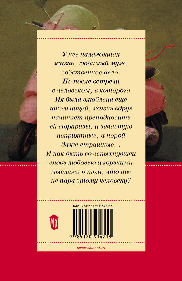 У нее налаженная жизнь, любимый муж, собственное дело. Но после встречи с человеком, в которого Ия была влюблена еще школьницей, жизнь вдруг начинает преподносить ей сюрпризы и зачастую неприятные, а порой даже страшные. И как быть со вспыхнувшей вновь любовью и горькими мыслями о том, что ты не пара этому человеку?