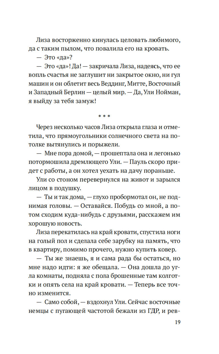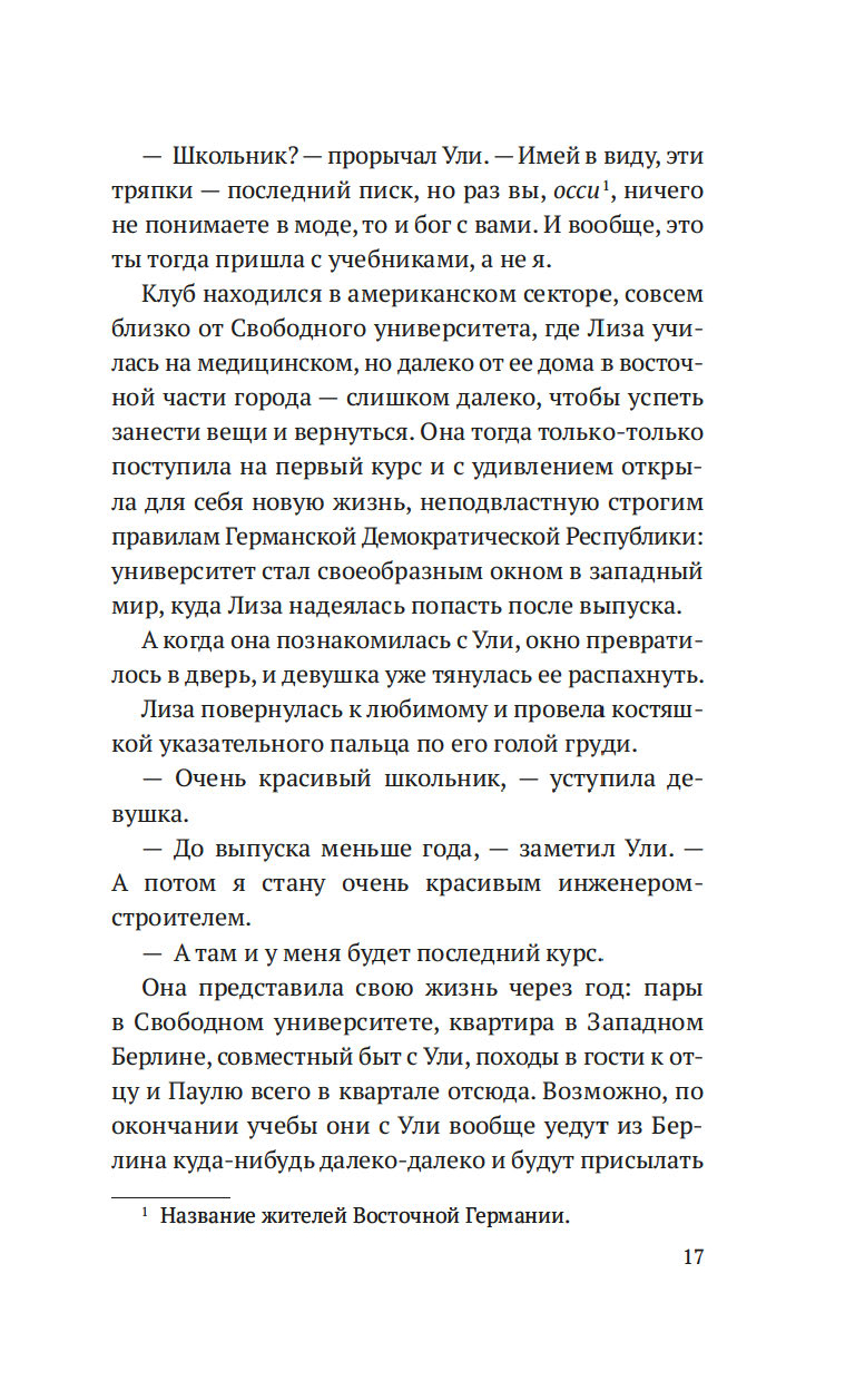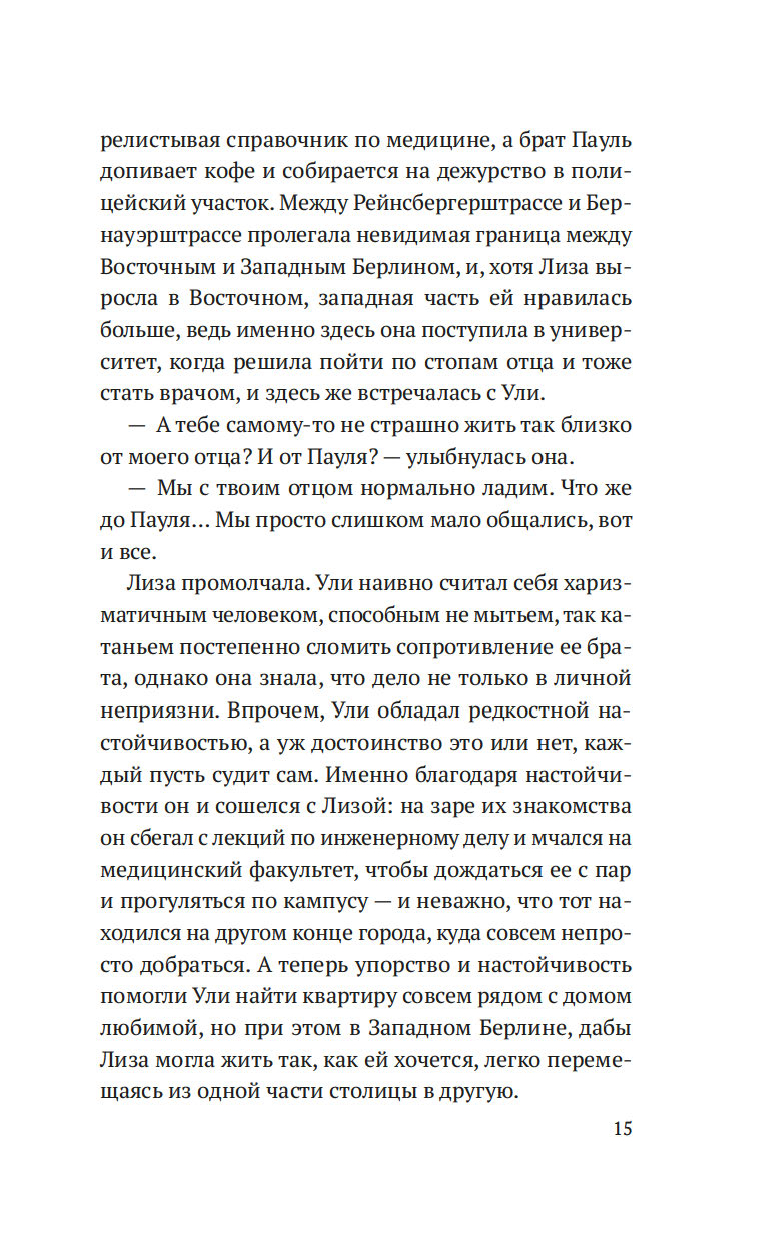 Берлин, начало 1960-х. В городе, разделенном на сферы влияния союзников, по-прежнему свежа память о войне, но граждане социалистической ГДР свободно перемещаются в западный сектор и могут даже учиться там в университете. Студентка медицинского факультета Лиза давно сделала свой выбор: она хочет жить в Западном Берлине, пусть даже ей придется расстаться с отцом и братом. Зато рядом будет ее любимый Ули, с которым они скоро поженятся… Однако политическая машина неумолима: выросшая в течение ночи Берлинская стена грозит навсегда разлучить влюбленных. Так начинается долгий путь молодой пары к воссоединению, горький, зачастую мучительный, но полный отчаянной надежды.