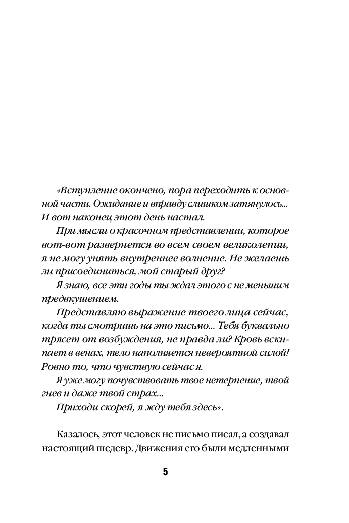 Но преступник невероятно хитер. Кажется, он просчитывает развитие ситуации даже не на три, а на тридцать ходов вперед. Снова и снова полицейские обнаруживают его письма смерти…