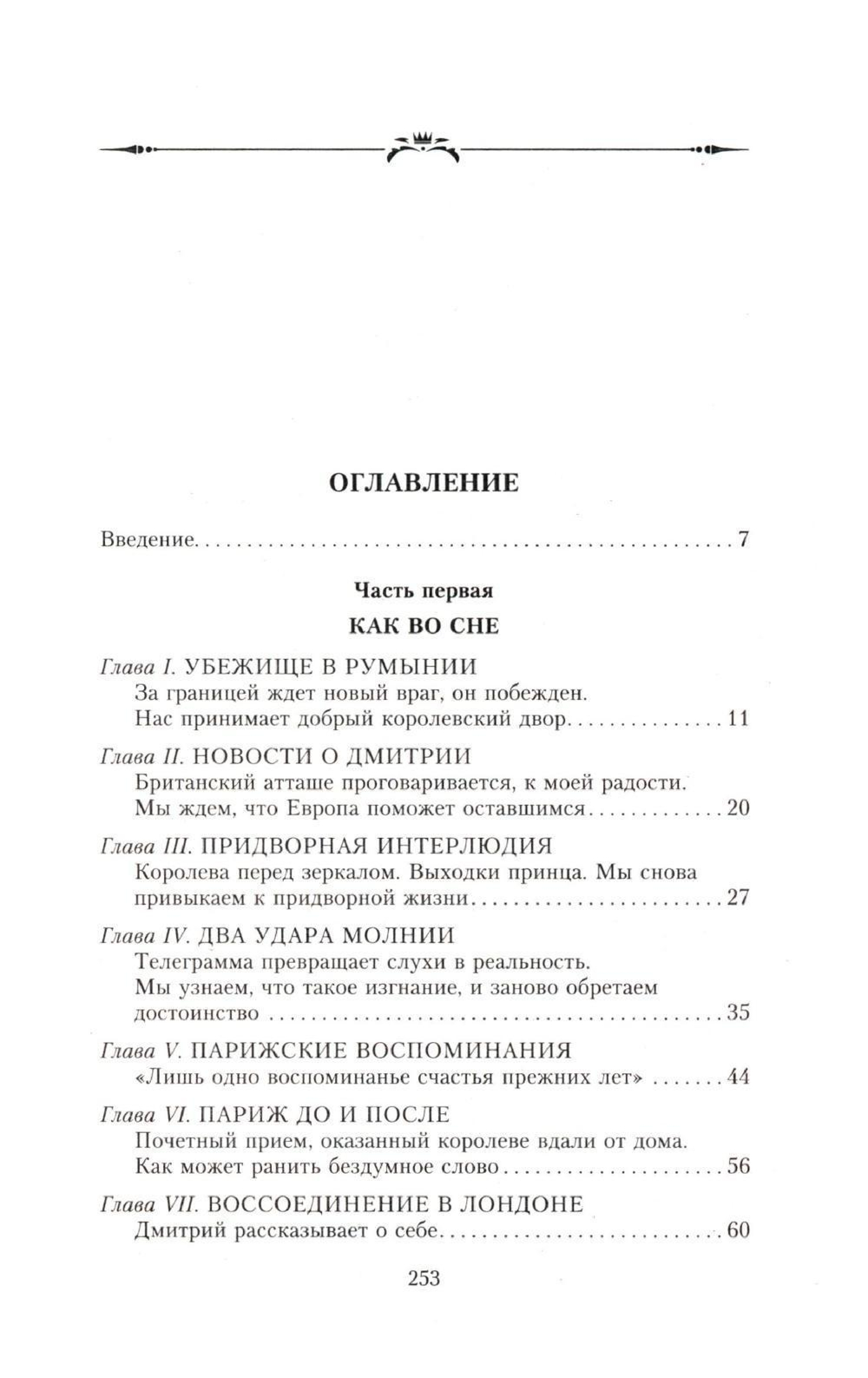 Княжна рассказывает о дружбе с королем Испании Альфонсо XIII, о встречах с королевой Англии, императрицей Марией Федоровной и королем Густавом V, о превратностях жизни в Лондоне и Париже.