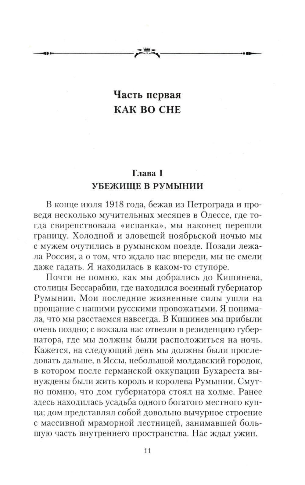 Великой княжне Марии Павловне и ее близким удалось спастись от гибели бегством из революционной России. Но жизнь на чужбине оказалась нелегкой, и княжна с благодарностью вспоминает тех немногих, кто помог ее семье, среди них короля и королеву Румынии.