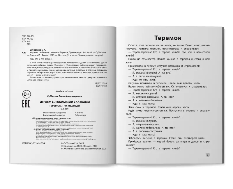 Играем с любимыми сказками. Теремок. Три медведя