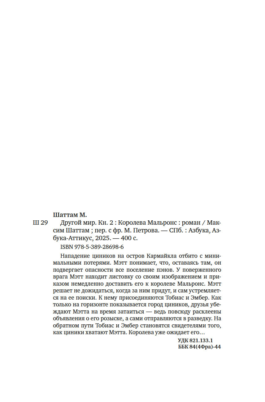 | Название в оригинале | Autre-Monde vol. 2 Malronce |