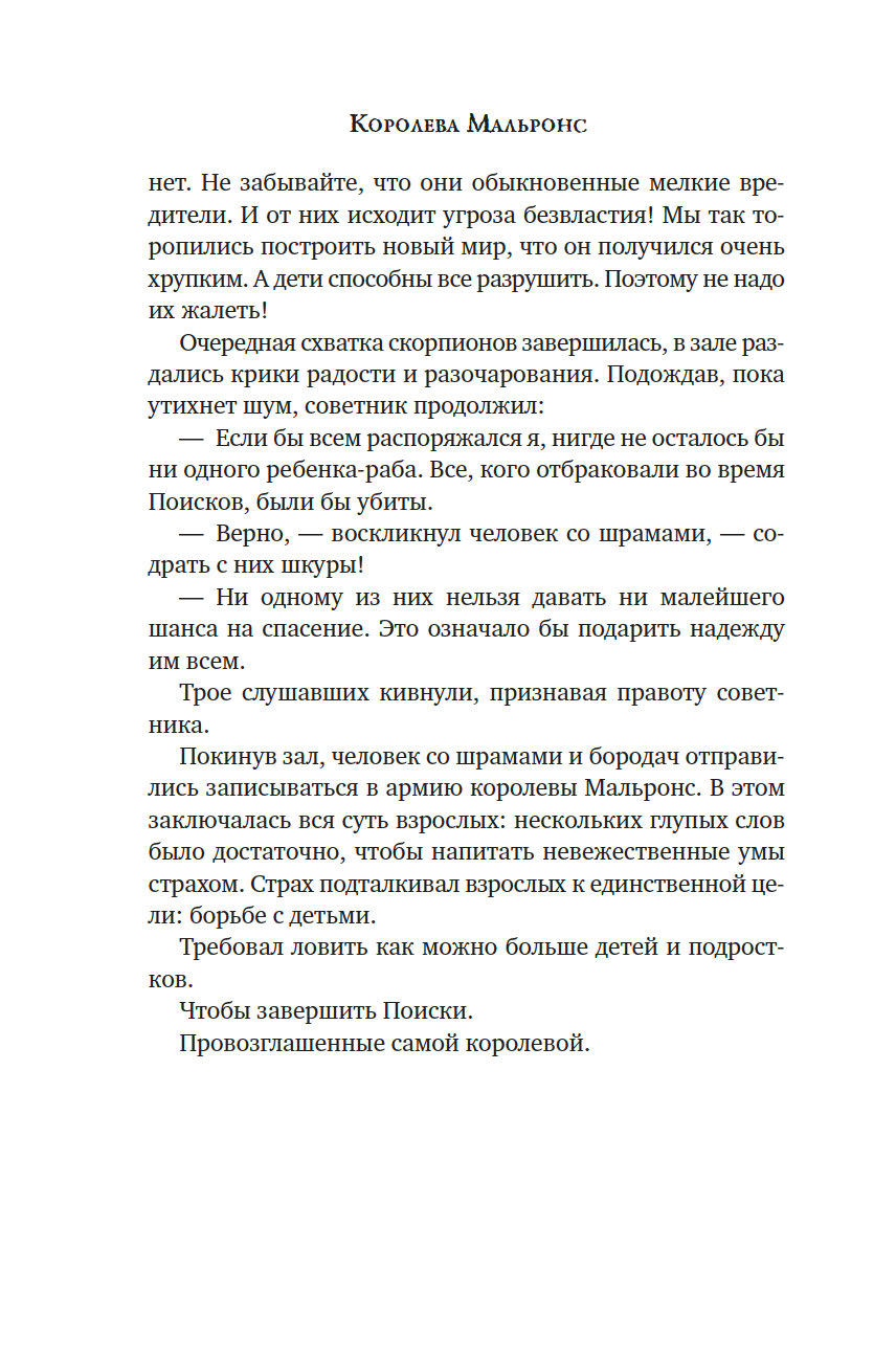 Нападение циников на остров Кармайкла отбито с минимальными потерями. Мэтт понимает, что, оставаясь там, он подвергает опасности все поселение пэнов. У поверженного врага Мэтт находит листовку со своим изображением и приказом немедленно доставить его к королеве Мальронс. Мэтт решает не дожидаться, когда за ним придут, и сам устремляется на ее поиски. К нему присоединяются Тобиас и Эмбер. Как только на горизонте показывается город циников, друзья убеждают Мэтта на время затаиться – ведь повсюду расклеены объявления о его розыске, а сами отправляются в разведку. На обратном пути Тобиас и Эмбер становятся свидетелями того, как циники хватают Мэтта. Королева уже ожидает его…