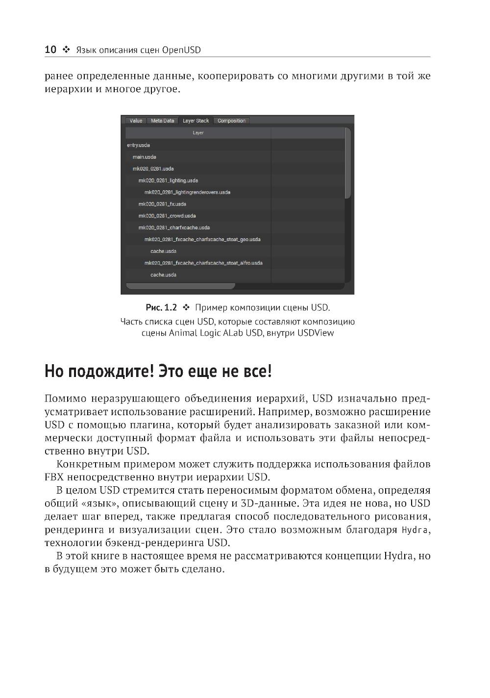 Книга посвящена универсальному описанию трехмерной сцены компьютерной графики – Universal Scene Description, или USD. Эта разработка студии Pixar используется для обмена данными 3D-сцен между различными инструментами и платформами в процессе создания графики и анимации. Она уже произвела фурор в индустрии визуальных эффектов, кино и игр, и такие крупные игроки, как NVidia, Apple и Autodesk, бросились в эту технологию с головой.