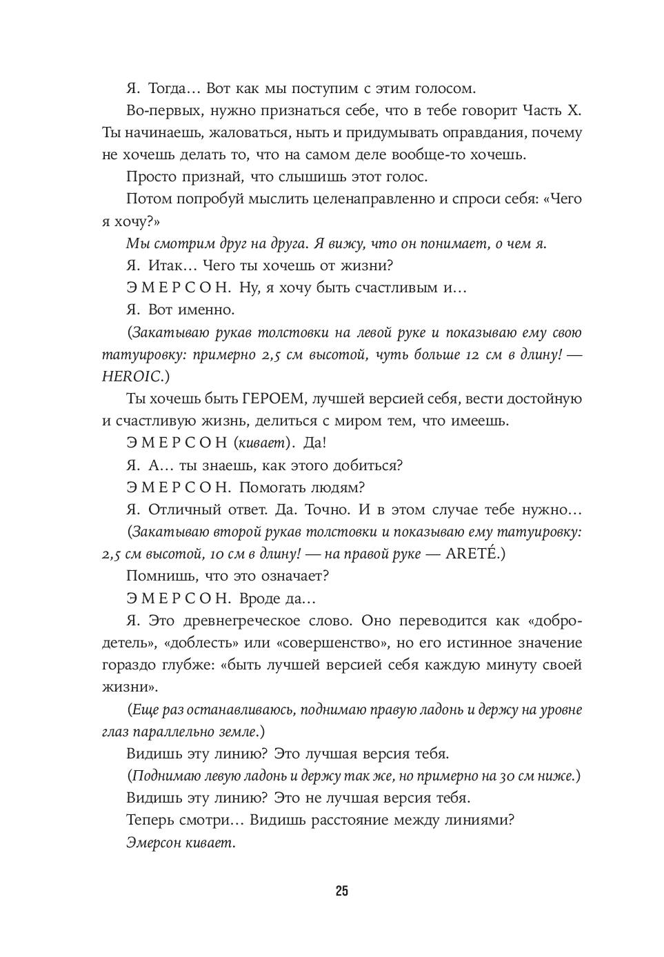 Жизнь постоянно испытывает вас на прочность? Вы не знаете, как реализовать свой потенциал, и не можете достичь поставленных целей? Это нормально, трудности неизбежны, говорит философ и успешный предприниматель Брайан Джонсон. Он призывает признать их частью жизненного пути и извлечь ценные уроки, которые помогут вам стать сильнее. Основываясь на идеях древних мыслителей и результатах исследований современных ученых, в книге "Герой своей жизни" он рассказывает о способах раскрыть свой потенциал и обрести силы, чтобы изменить жизнь к лучшему. Внутри вы найдете 451 совет, который поможет вам развить дисциплину, смелость и мудрость, чтобы уверенно двигаться к цели.