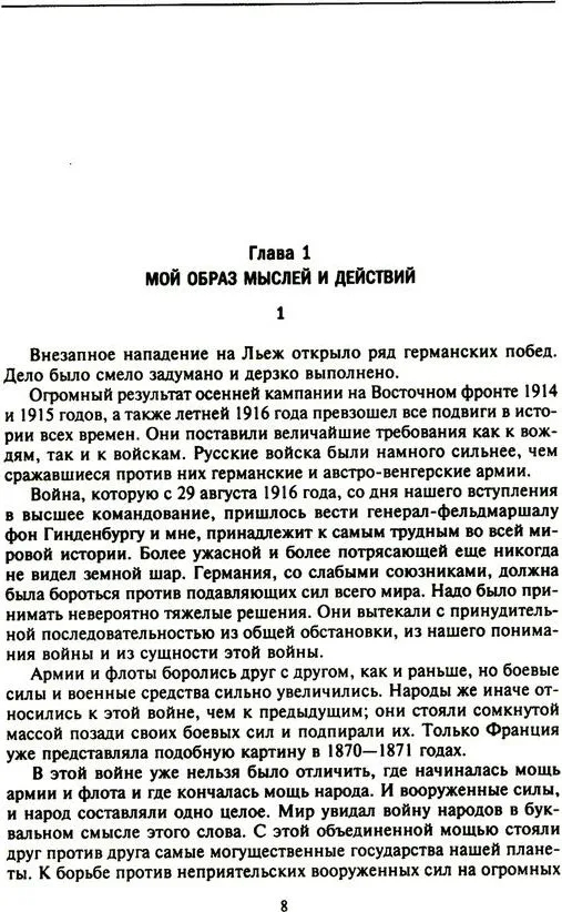 Немецкий генерал Эрих Фридрих Вильгельм Людендрф, будучи одним из руководителей германского Генерального штаба, в своих воспоминаниях подробно рассказывает об участии Германии в Первой мировой войне – раскрывает секреты немецких операций на различных фронтах, показывает организационную работу в немецких штабах и Ставке, анализирует причины неудач и поражений немецкой армии, дает критическую оценку действиям русской армии и армий стран-союзниц.