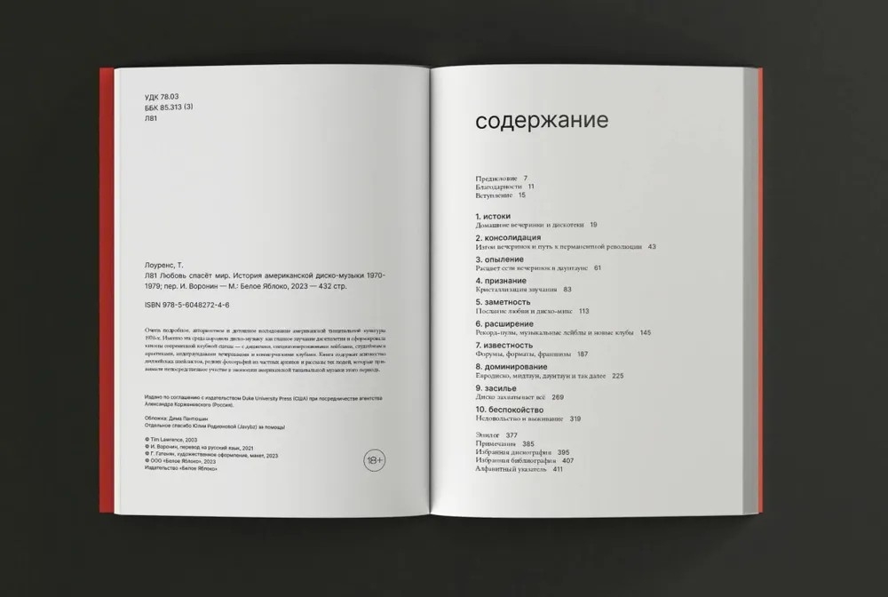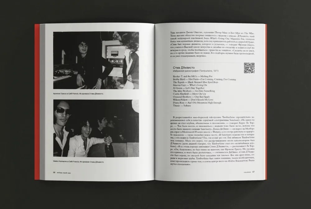 Книга содержит более 20 специальных диджейских плейлистов, отражающих изменение вкусов на протяжении всего диско-десятилетия, и свыше 70 редких фотографий из частных коллекций.