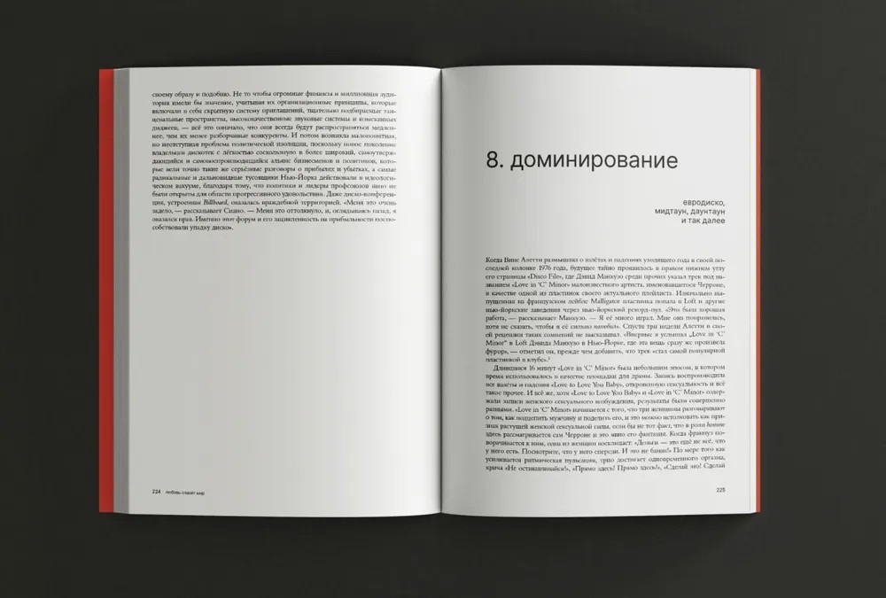 "Любовь спасёт мир" Тима Лоуренса в подробностях фиксирует становление и бурное развитие американской танцевальной культуры 1970-х, которая подарила миру диско и многочисленные его производные. Книга аккуратно и точно описывает культурную эволюцию – от андеграундных корней культурной сцены Нью-Йорка до безвкусного расцвета в центре Манхэттена и основных точек на карте остальной Америки – Чикаго, Бостона, Сан-Франциско, Лос-Анджелеса и Майами.