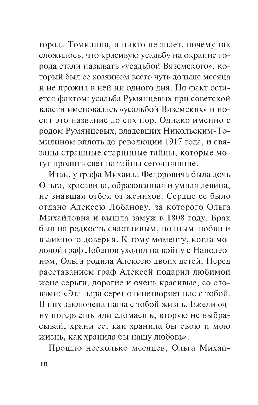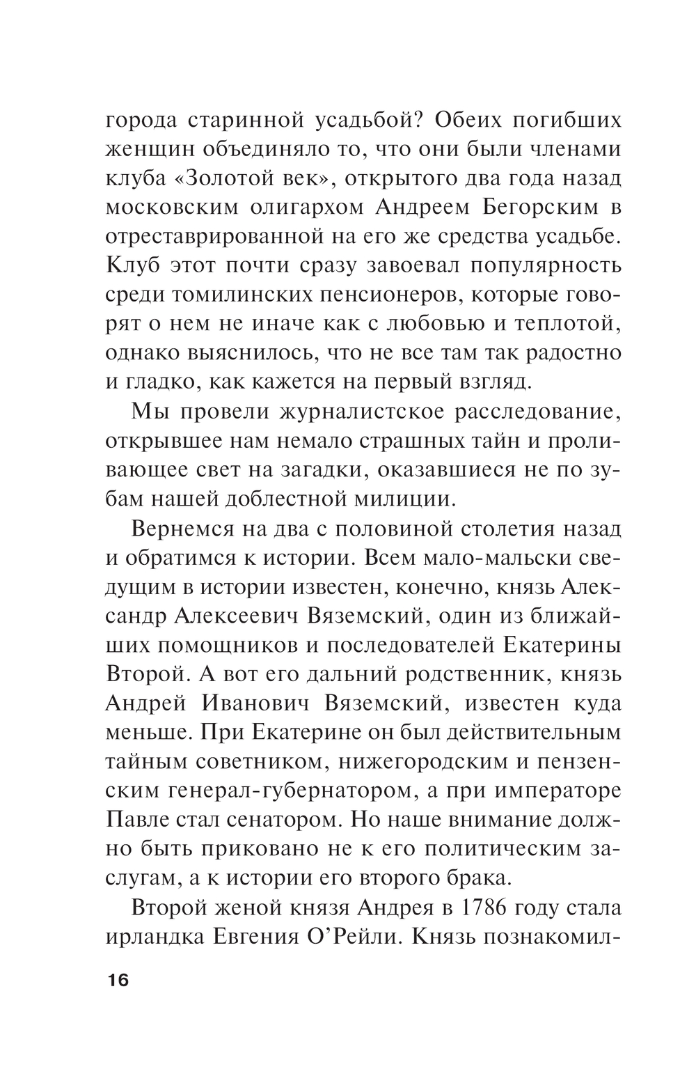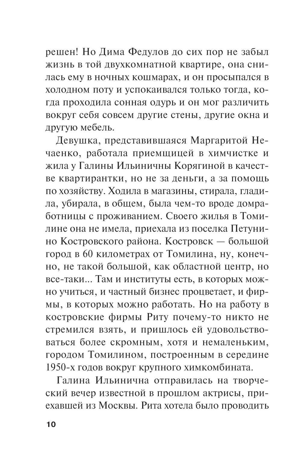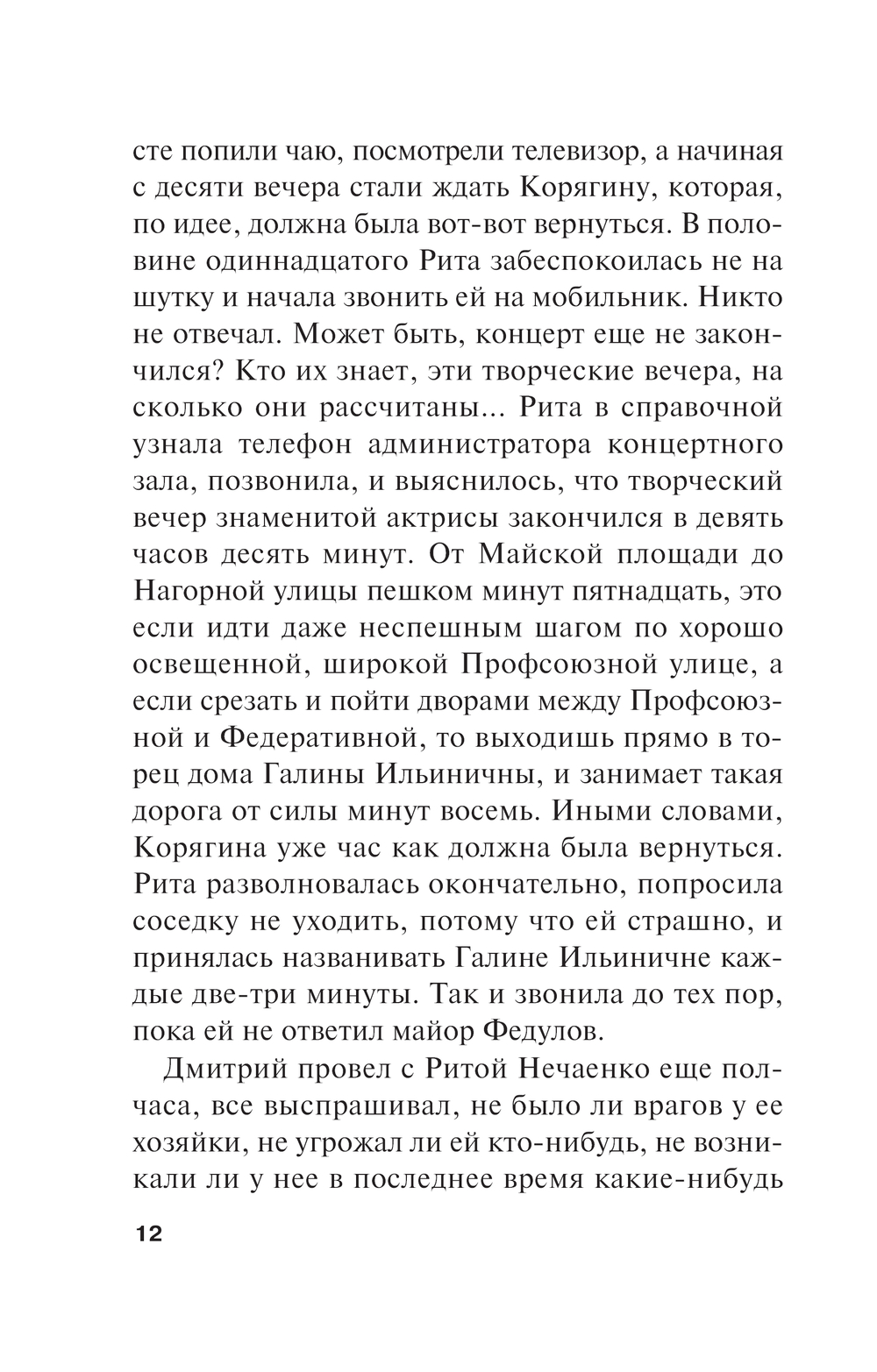 Разбитое зеркальце на груди, сережка, вырванная из уха – своеобразная "визитная карточка" убийцы. Кто убил этих двух почтенных женщин – маньяк, одержимый мрачноватыми легендами рода Вяземских, или его изощренный имитатор? Все версии неизменно заходят в тупик. Бизнесмен, чьи начинания в связи с этими преступлениями находятся под угрозой, решил прибегнуть к помощи частного детектива. Так Анастасия Каменская оказалась в провинциальном Томилине. Да-да, полковник милиции в отставке Каменская теперь работает в частном детективном агентстве, и это расследование – ее дебют на данном поприще. Теперь за её спиной нет могущественного и влиятельного ведомства, и это как-то непривычно. Но от Насти по-прежнему требуется ее умение разговаривать и слушать, систематизировать факты, интуитивно – а это есть вершина ее "сыскного таланта" – выбирать верное направление поисков. Словом, открывать все двери, которые встречаются на ее пути. Ведь за одной из них находится истина. Она-то неподвластна никаким переменам.