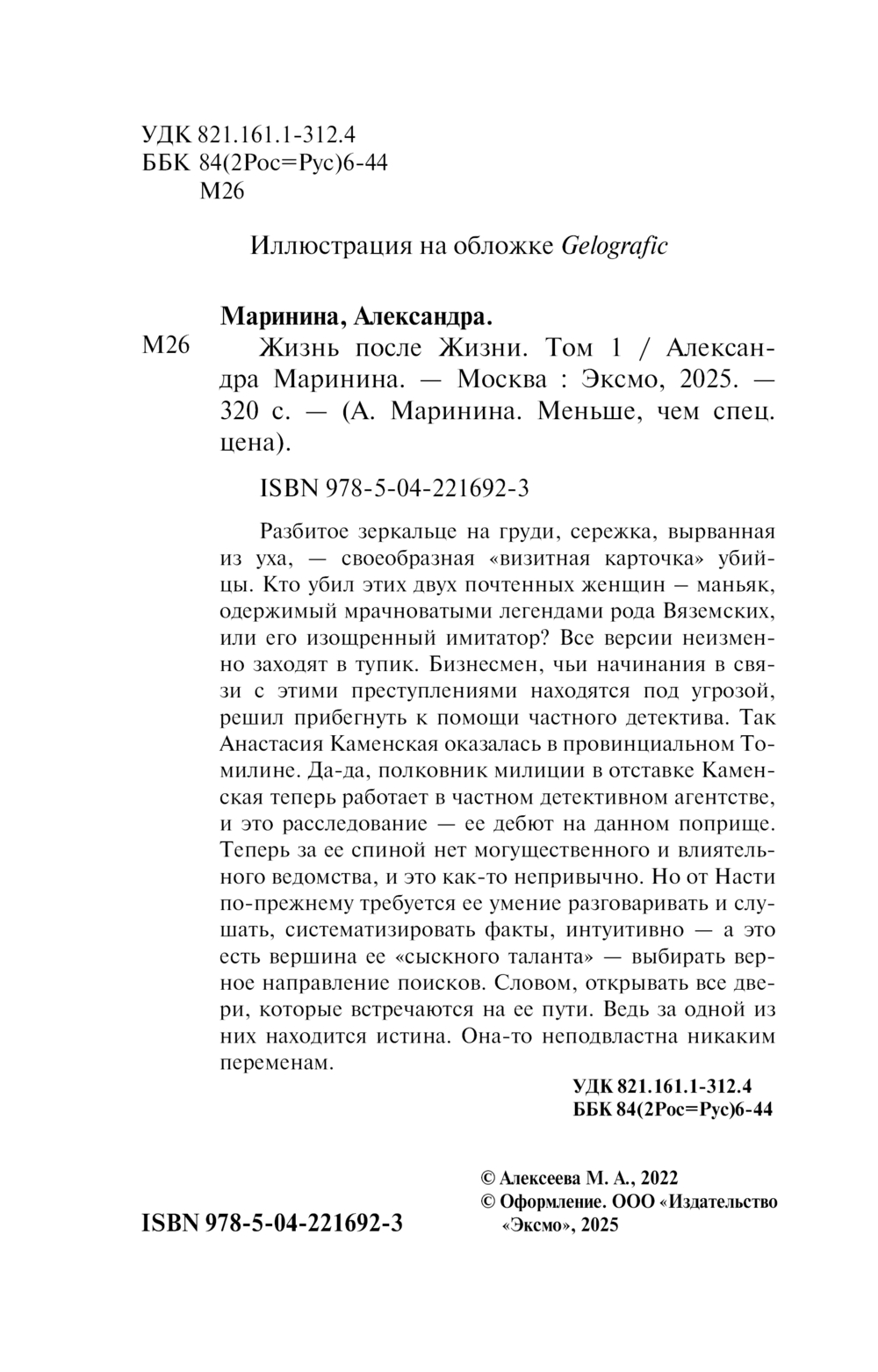 | Серия | А. Маринина. Меньше, чем спец.цена |