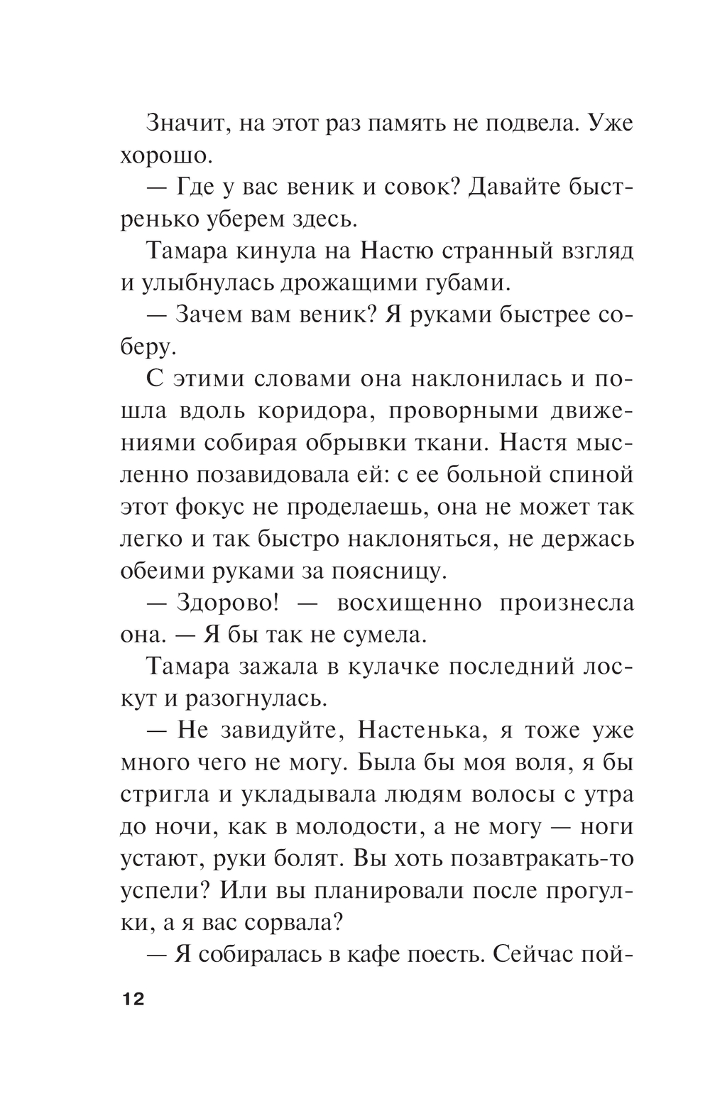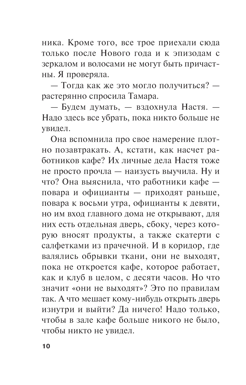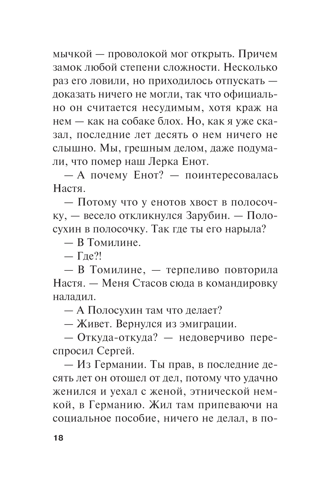 Разбитое зеркальце на груди, сережка, вырванная из уха – своеобразная "визитная карточка" убийцы. Кто убил этих двух почтенных женщин – маньяк, одержимый мрачноватыми легендами рода Вяземских, или его изощренный имитатор? Все версии неизменно заходят в тупик. Бизнесмен, чьи начинания в связи с этими преступлениями находятся под угрозой, решил прибегнуть к помощи частного детектива. Так Анастасия Каменская оказалась в провинциальном Томилине. Да-да, полковник милиции в отставке Каменская теперь работает в частном детективном агентстве, и это расследование – ее дебют на данном поприще. Теперь за её спиной нет могущественного и влиятельного ведомства, и это как-то непривычно. Но от Насти по-прежнему требуется ее умение разговаривать и слушать, систематизировать факты, интуитивно – а это есть вершина ее "сыскного таланта" – выбирать верное направление поисков. Словом, открывать все двери, которые встречаются на ее пути. Ведь за одной из них находится истина. Она-то неподвластна никаким переменам.