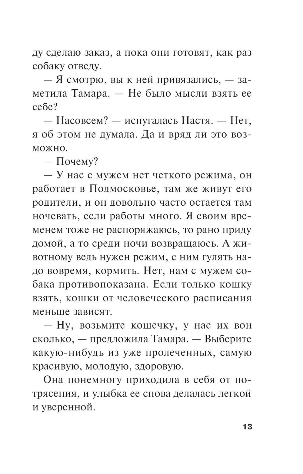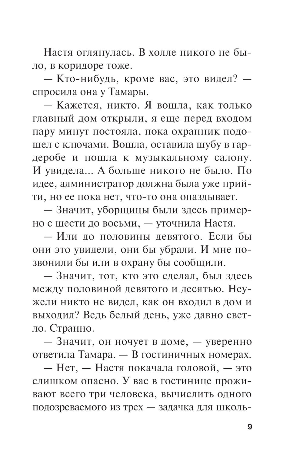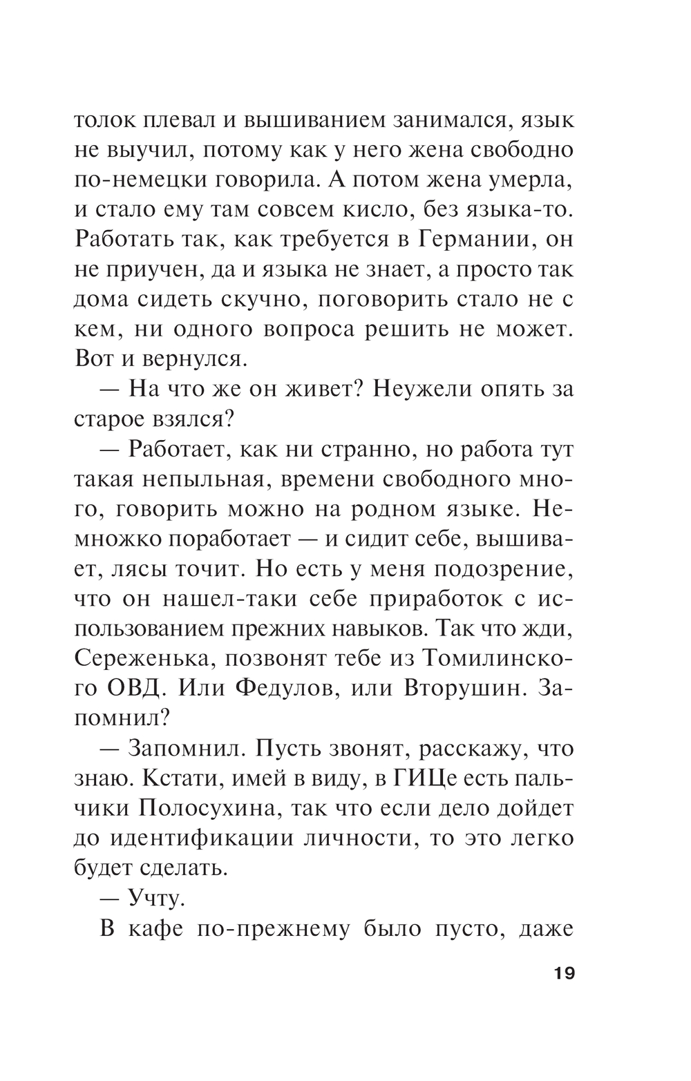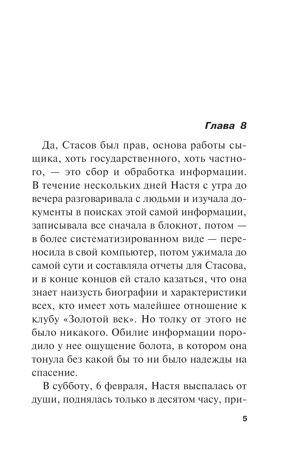 Разбитое зеркальце на груди, сережка, вырванная из уха – своеобразная "визитная карточка" убийцы. Кто убил этих двух почтенных женщин – маньяк, одержимый мрачноватыми легендами рода Вяземских, или его изощренный имитатор? Все версии неизменно заходят в тупик. Бизнесмен, чьи начинания в связи с этими преступлениями находятся под угрозой, решил прибегнуть к помощи частного детектива. Так Анастасия Каменская оказалась в провинциальном Томилине. Да-да, полковник милиции в отставке Каменская теперь работает в частном детективном агентстве, и это расследование – ее дебют на данном поприще. Теперь за её спиной нет могущественного и влиятельного ведомства, и это как-то непривычно. Но от Насти по-прежнему требуется ее умение разговаривать и слушать, систематизировать факты, интуитивно – а это есть вершина ее "сыскного таланта" – выбирать верное направление поисков. Словом, открывать все двери, которые встречаются на ее пути. Ведь за одной из них находится истина. Она-то неподвластна никаким переменам.