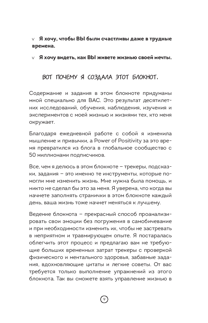 Искренность, вдохновение и преодоление! Выделяя по 3 минуты в день на заполнение этого дневника, вы сделаете большой вклад в свое здоровье и важные шаги к хорошему самочувствию. Сетка специально разработана так, чтобы при коротких регулярных записях вы прорабатывали негативные установки и учились мыслить в позитивном русле, восстанавливали свою энергию и больше радовались жизни!