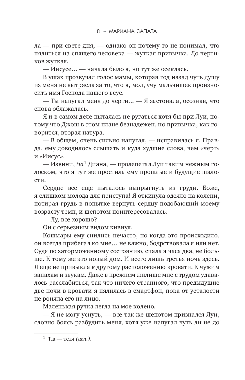 Меня зовут Диана. В отличие от моей знаменитой кузины-футболистки Сэл Касильяс, я – простой парикмахер, который зашивается в бытовых проблемах. Мне пришлось повзрослеть очень быстро: когда моего родного брата не стало, на меня легло воспитание двух его детей. Джошу 10 лет, Луи 5. Мама постоянно корит меня за то, что я не умею обращаться с детьми. Пришлось купить дом и переехать в Остин, где я почти никого не знаю.