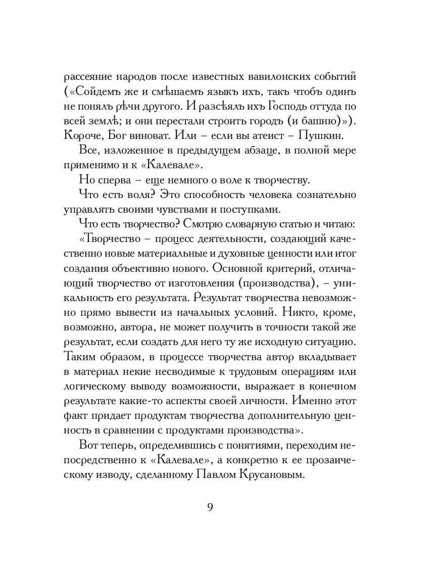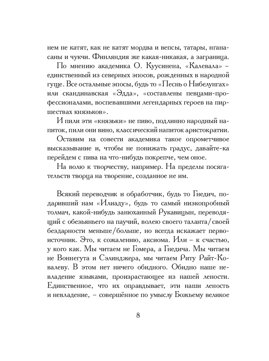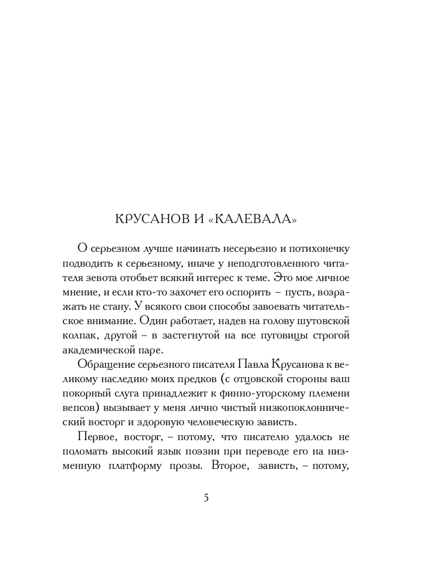 Перед вами полное издание "Калевалы" в прозаическом пересказе Павла Крусанова, увлеченного ценителя этого выдающегося литературного памятника.