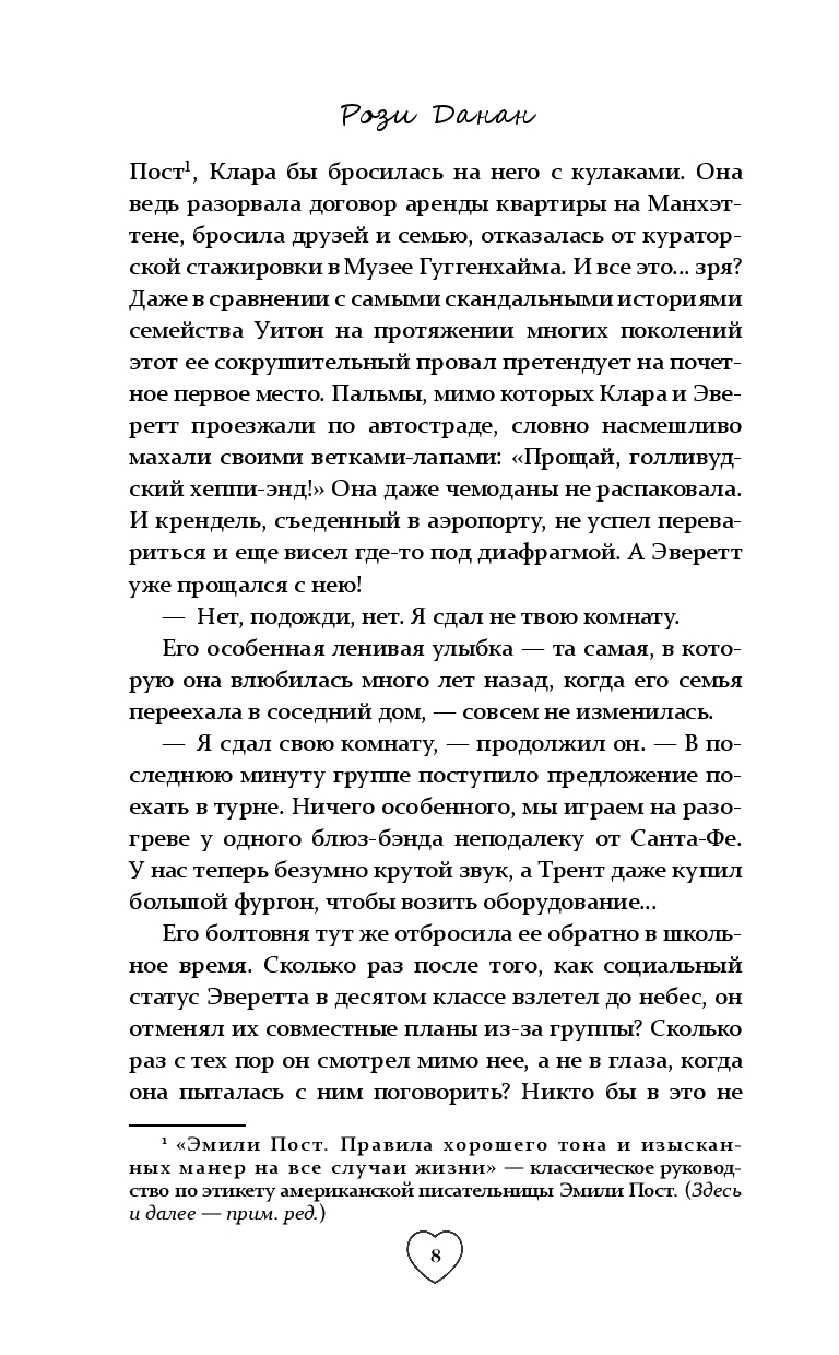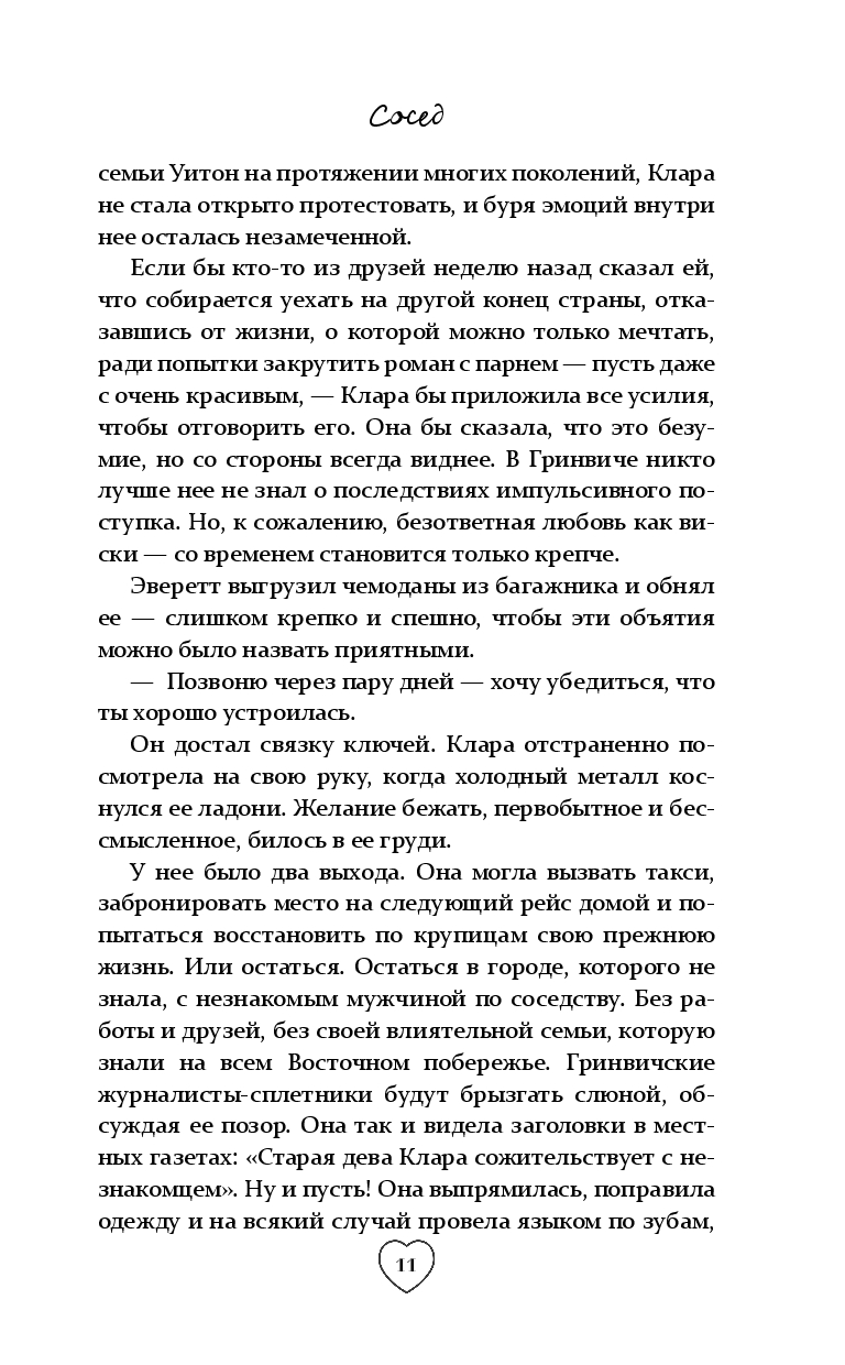 Клара Уитон совершенно не похожа ни на кого из своей семьи. Она успешная, с хорошими манерами и очень предсказуемая для окружающих. Но у каждого в семействе Уитон свои слабости. Поэтому, когда парень, который всегда ей нравился, предлагает Кларе переехать на другой конец страны, соблазн оказывается слишком велик. К сожалению, правда далека от фантазии.