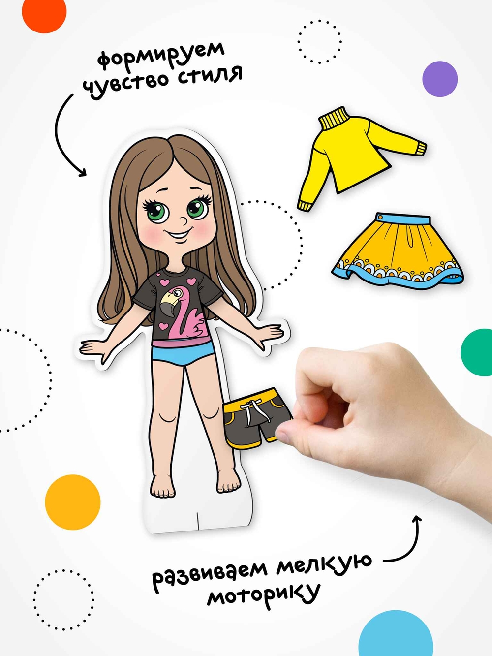 "Одень куклу. Красотка Майя" – это игра, которая надолго займет ребенка и разовьет его фантазию. В коробке находится фигурка куколки и 24 магнитных предмета одежды. Кукла устанавливается на подставку, после чего можно подобрать ей подходящий наряд для любого случая. Одежда на крепких магнитах хорошо держится на кукле, поэтому с ней можно полноценно играть.