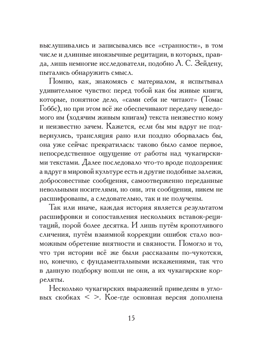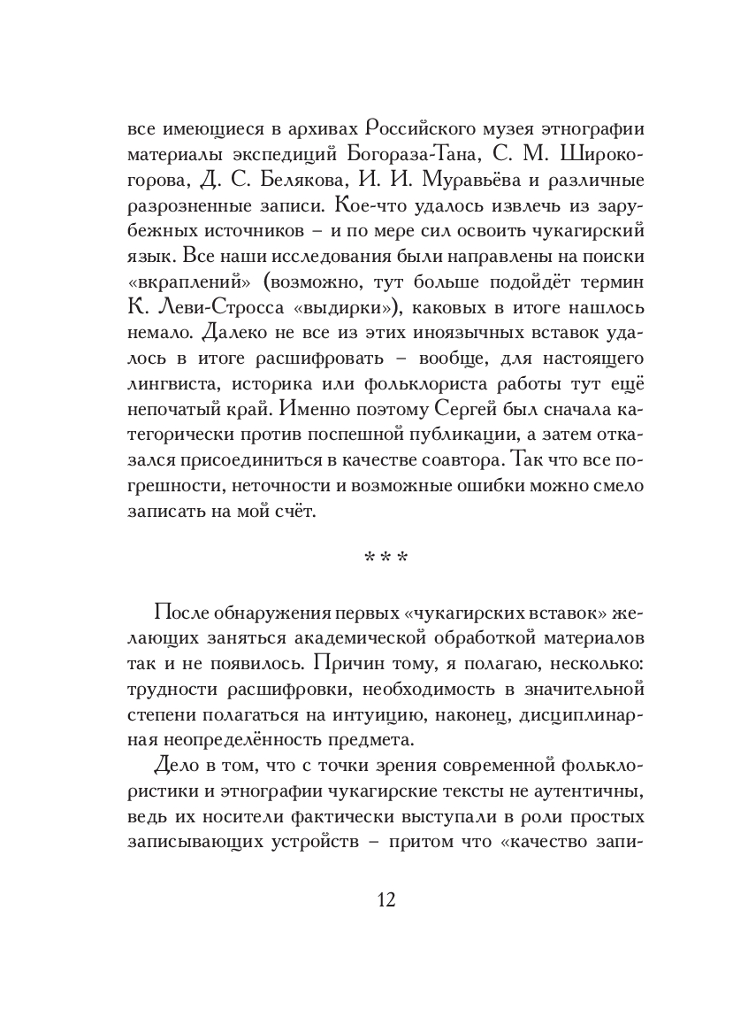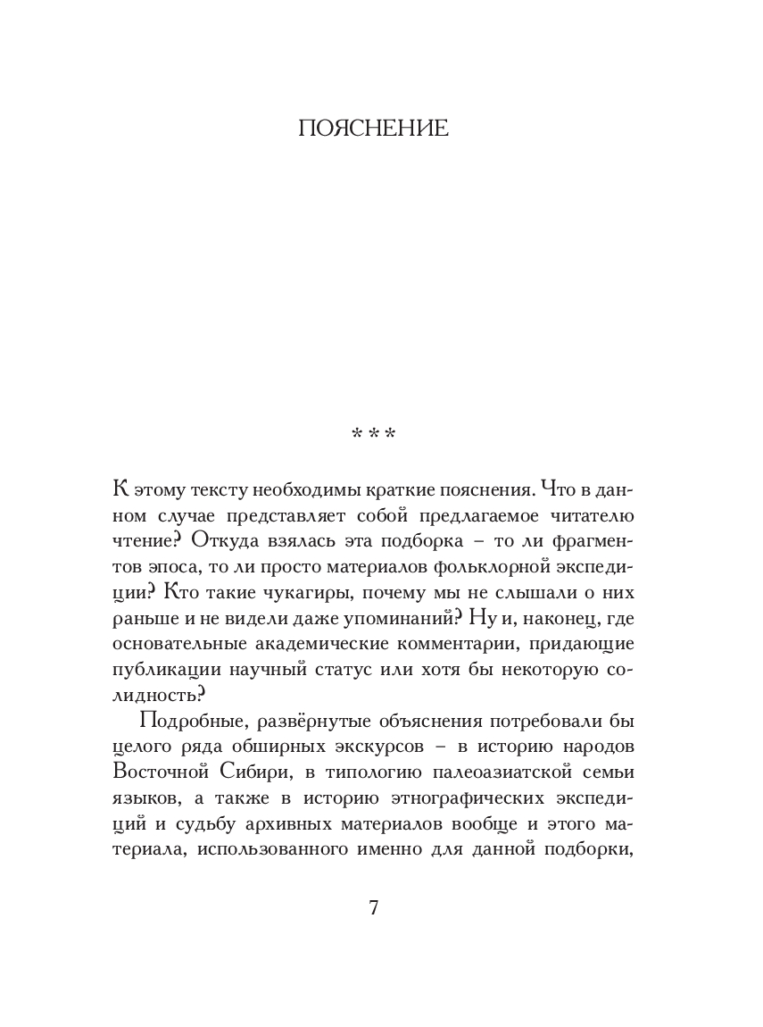 Несмотря на небольшой объем книги, заинтересованный читатель имеет полноценную возможность ознакомиться с самобытной философией чукагиров, с занимательными деталями быта и укладом жизни людей Севера и погрузиться в мистическую и одновременно поэтичную атмосферу того, что этот загадочный народ смог поведать о себе.