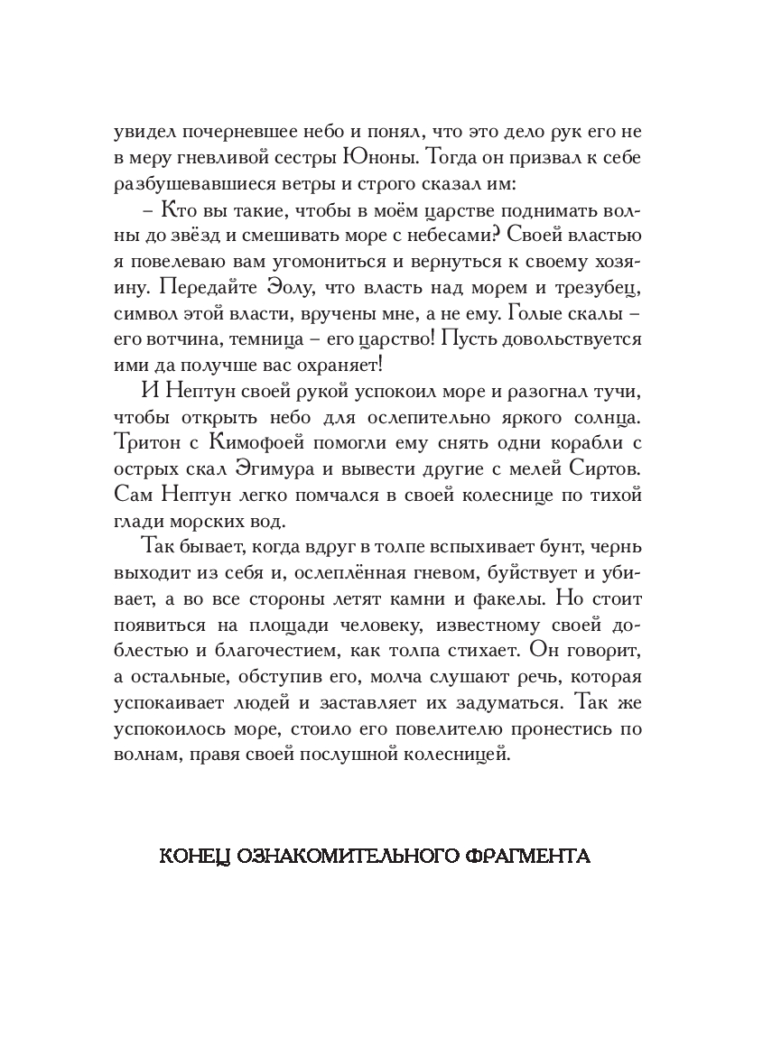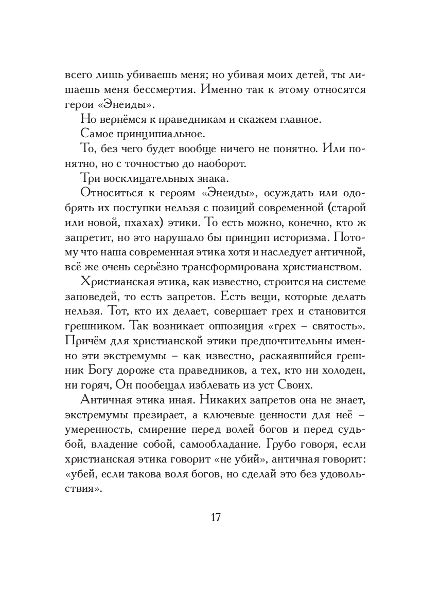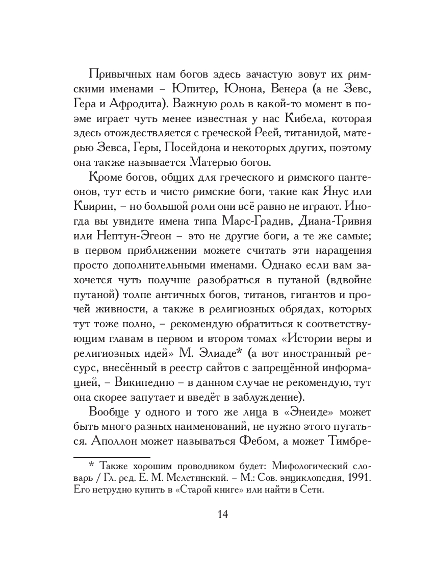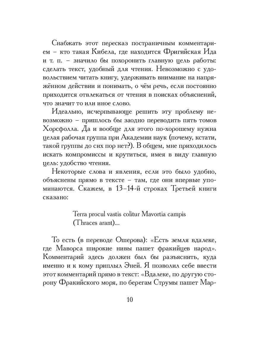 "Энеида" – главнейшее литературное достояние Римской империи. Падение Трои, история любви Энея и Дидоны, путешествие троянцев по полному опасных чудовищ Средиземному морю, посещение героем царства мёртвых, эпохальные битвы армий, распри коварных богов, картины будущего величия Рима и многое, многое другое – всё это составляет невиданное по размаху эпическое полотно, равного которому не выходило из-под пера поэта в Античности.