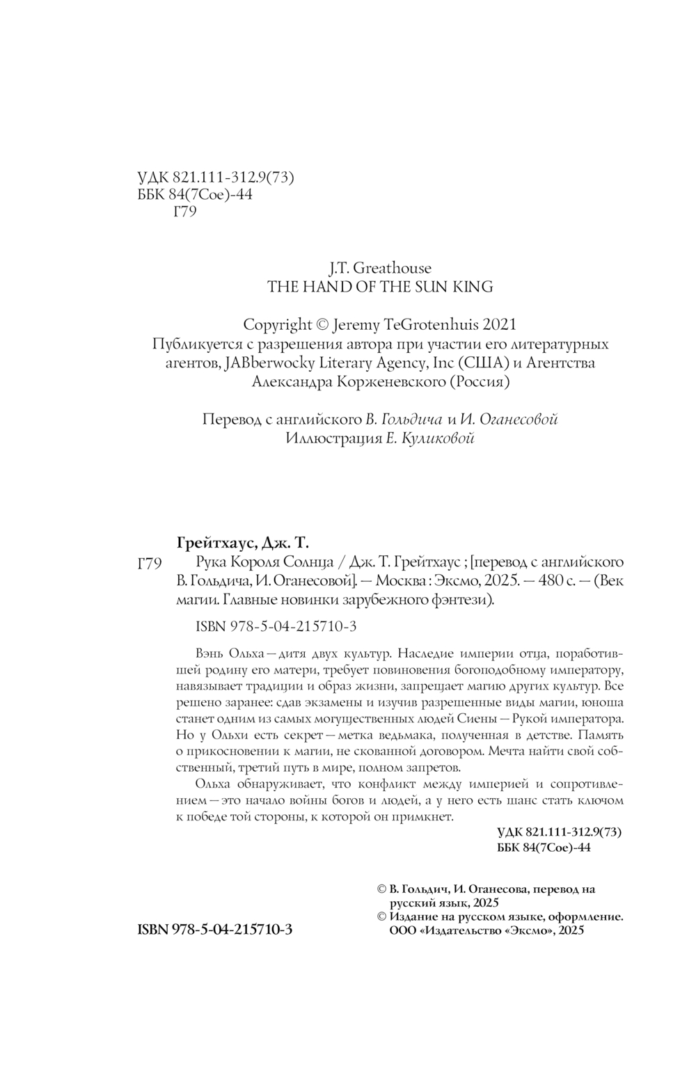 Вэнь Ольха – дитя двух культур. Наследие империи отца, поработившей родину его матери, требует повиновения богоподобному императору, навязывает традиции и образ жизни, запрещает магию других культур. Все решено заранее: сдав экзамены и изучив разрешенные виды магии, юноша станет одним из самых могущественных людей Сиены – Рукой императора. Но у Ольхи есть секрет – метка ведьмака, полученная в детстве. Память о прикосновении к магии, не скованной договором. Мечта найти свой собственный, третий путь в мире, полном запретов.