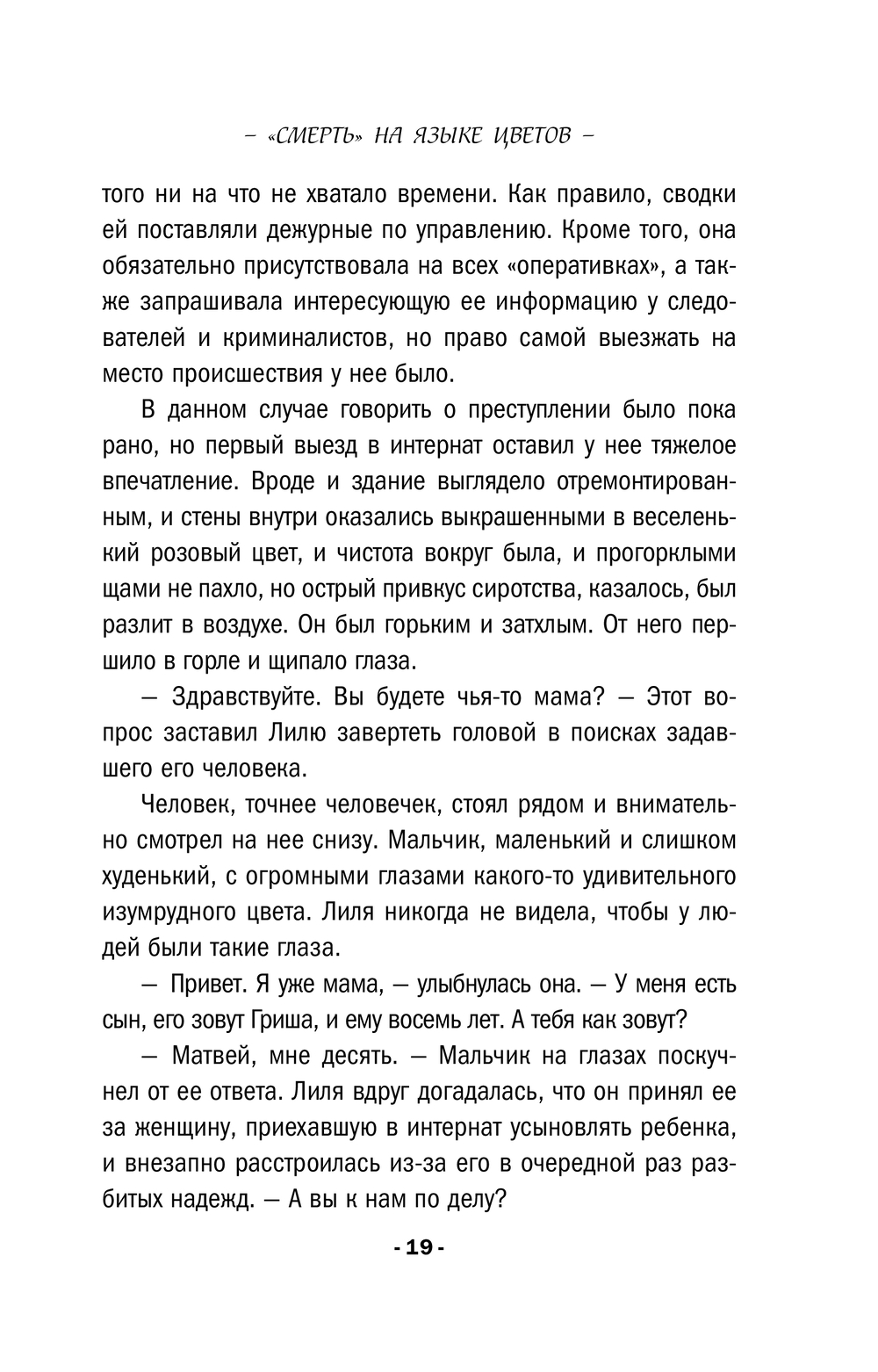 Все началось с маленького неприметного цветка лайма, который убийца оставил на теле своей первой жертвы. Каково было удивление Лилии Ветлицкой, работника следственного управления, когда она поняла, что убитой оказалась Вера, с которой ее связывает общее прошлое… Лилия взялась за расследование, даже не подозревая, что убийца знает еще много способов преподнести цветы. Она поняла, что ввязалась в опасную для своей жизни игру, когда сама получила букет от неизвестного отправителя.