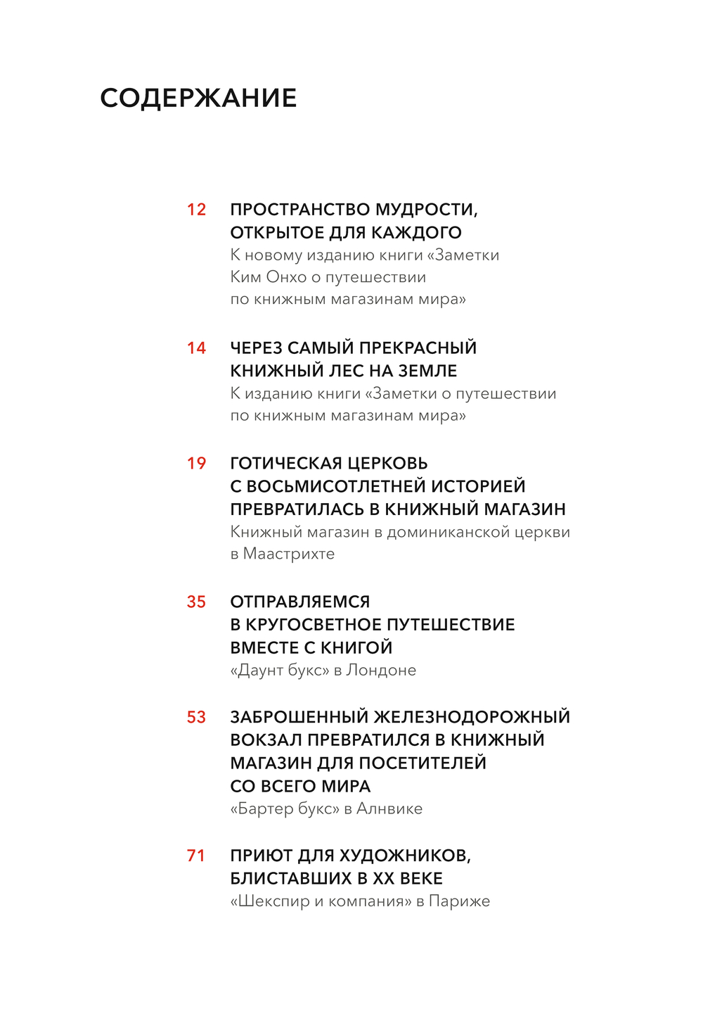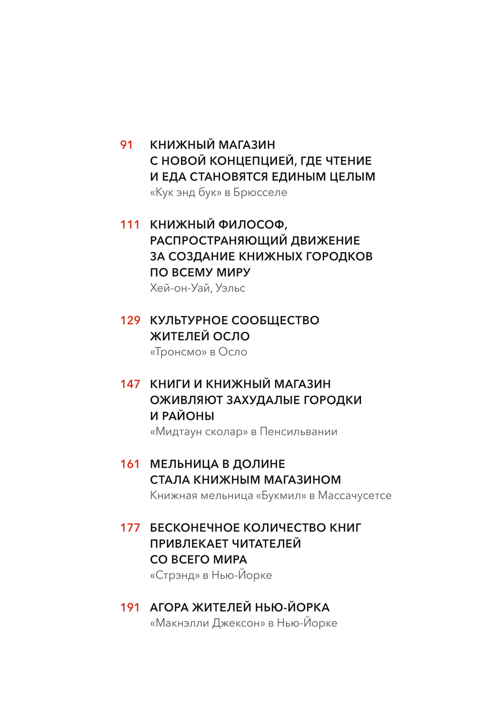 Автор объехал практически весь земной шар и посетил все известные книжные магазины: в Осло и Париже, в Нью-Йорке и Лондоне, в Сеуле и Токио. И не просто рассказал обо всех местах, где побывал, но и запечатлел их на камеру. Поэтому у вас есть возможность не только почитать о разных магазинчиках, но и посмотреть на них изнутри.
