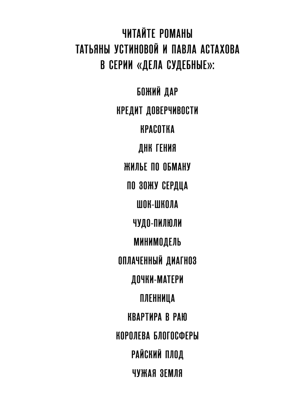 Новый роман Татьяны Устиновой и Павла Астахова из цикла "Дела судебные" о том, как обзавестись новой жилплощадью и не разориться, а также не потерять работу, оказавшись пешкой в чужой игре.