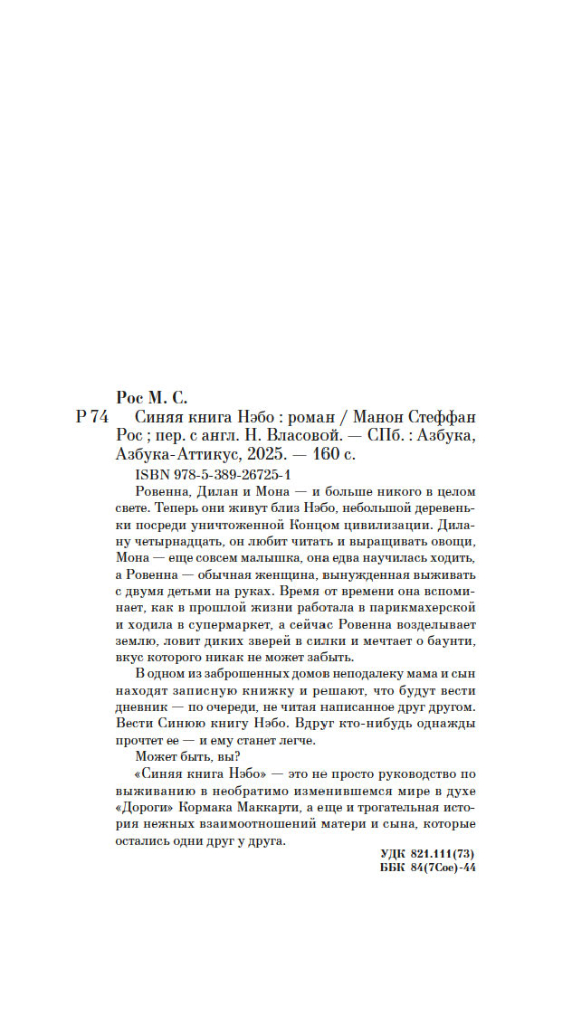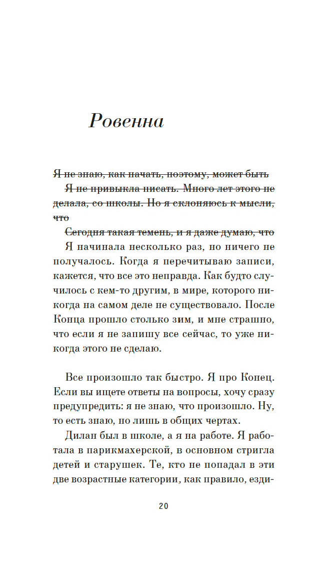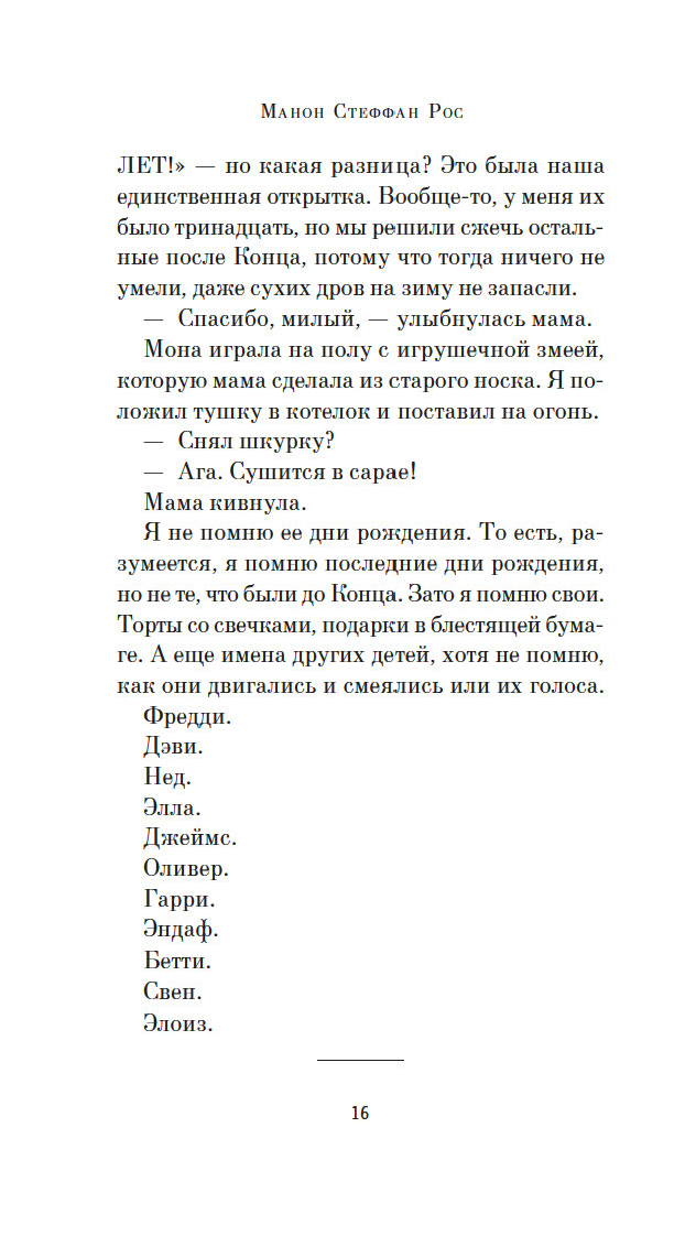 Ровенна, Дилан и Мона – и больше никого в целом свете. Теперь они живут близ Нэбо, небольшой деревеньки посреди уничтоженной Концом цивилизации. Дилану четырнадцать, он любит читать и выращивать овощи, Мона – еще совсем малышка, она едва научилась ходить, а Ровенна – обычная женщина, вынужденная выживать с двумя детьми на руках. Время от времени она вспоминает, как в прошлой жизни работала в парикмахерской и ходила в супермаркет, а сейчас Ровенна возделывает землю, ловит диких зверей в силки и мечтает о баунти, вкус которого никак не может забыть.