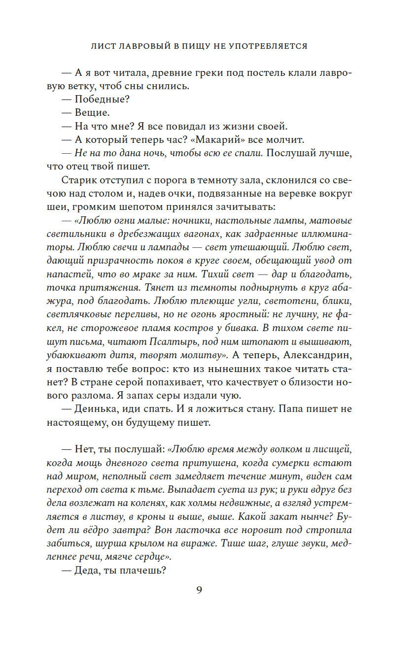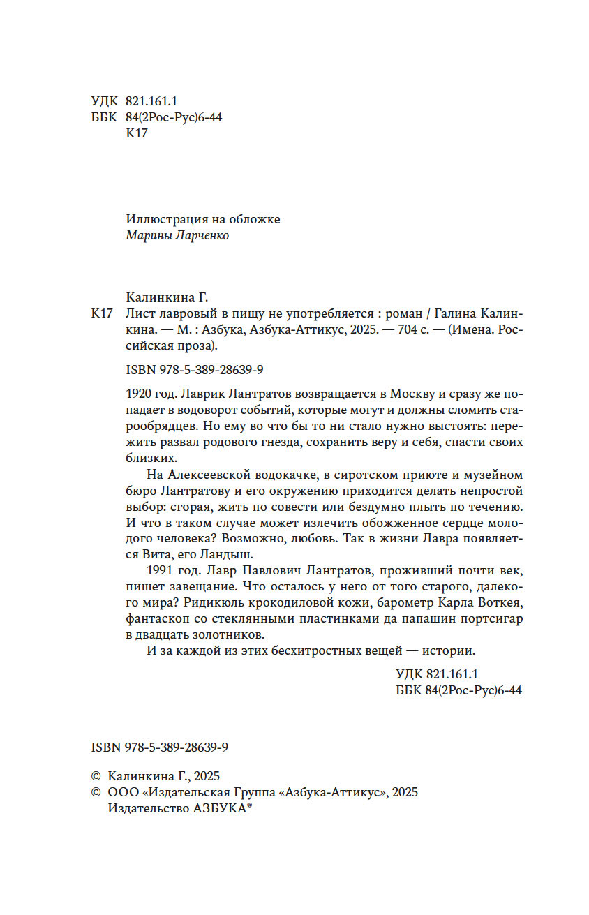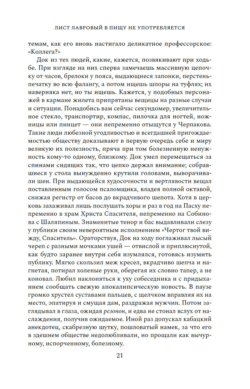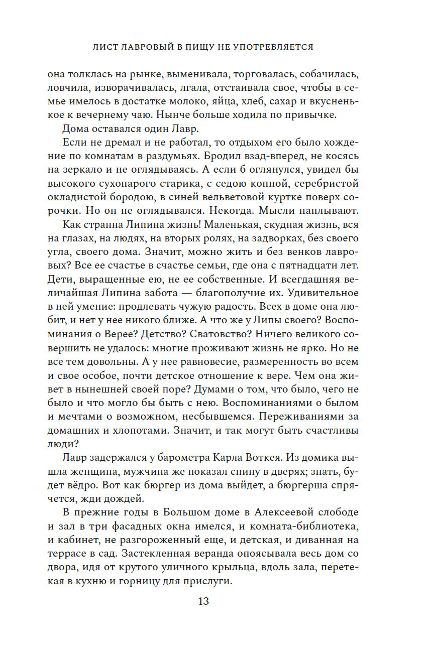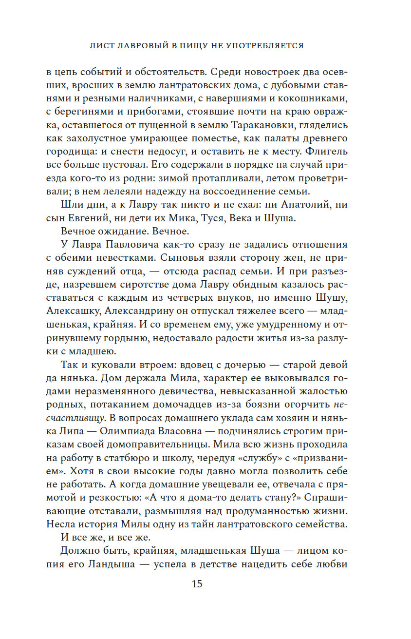 "Лист лавровый в пищу не употребляется" – из тех романов для неспешного чтения, которые заставляют забыть обо всем. История семьи, любви и жизни обычных людей, родившихся в начале бурного, а временами страшного ХХ века.