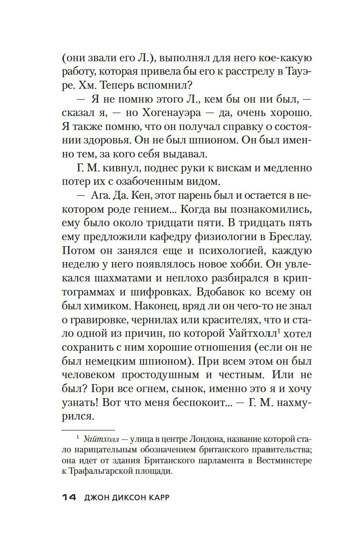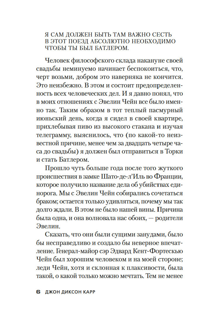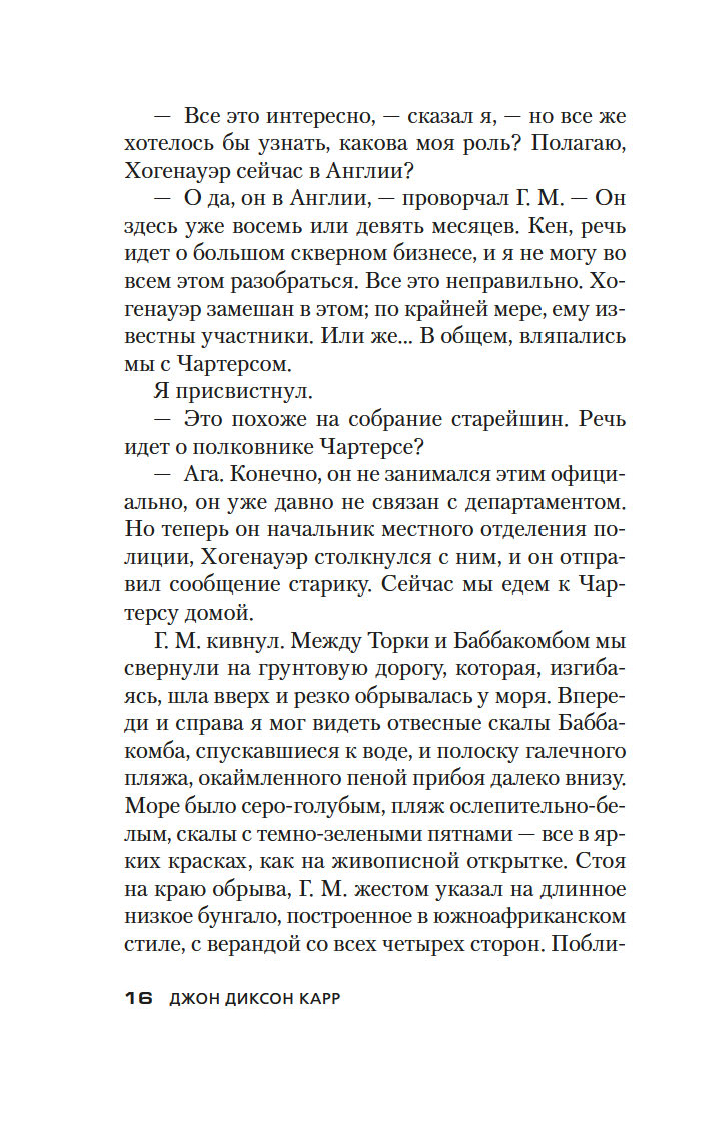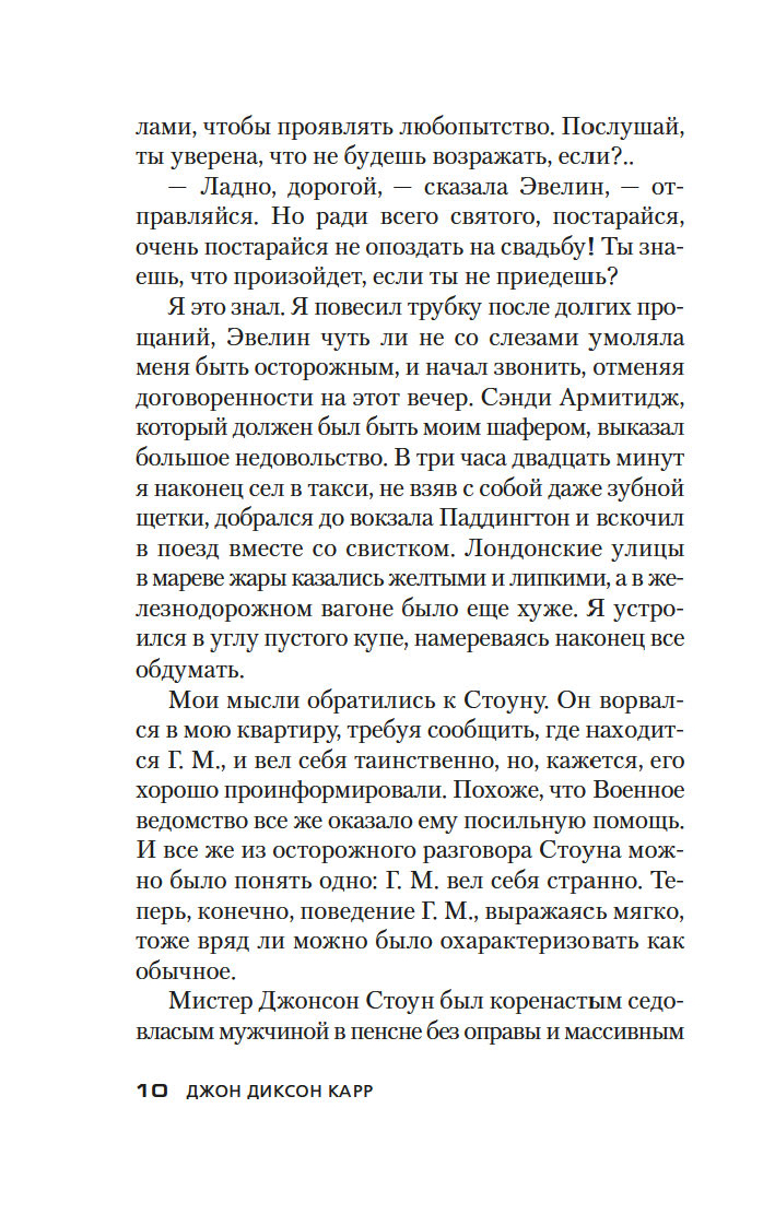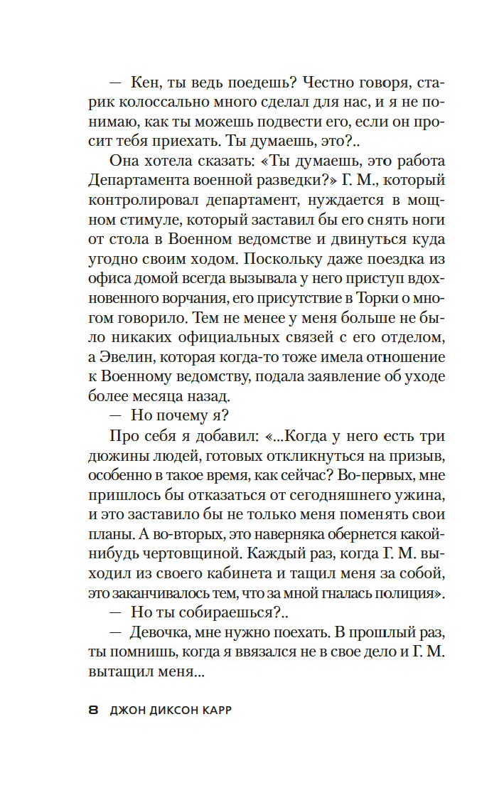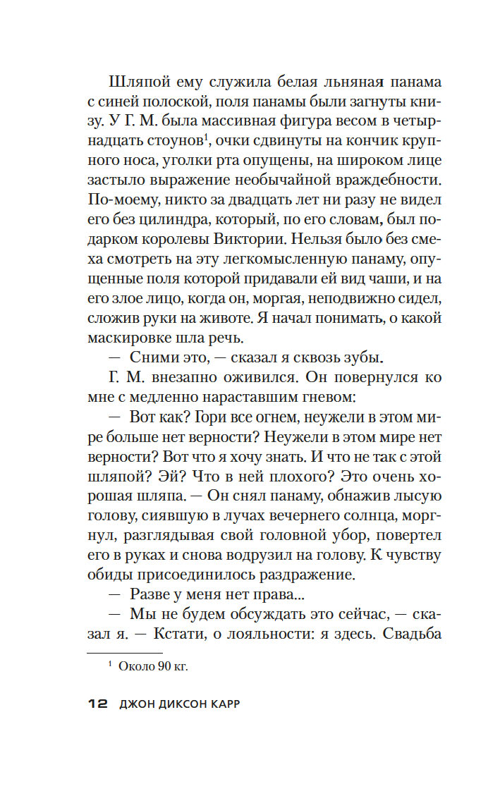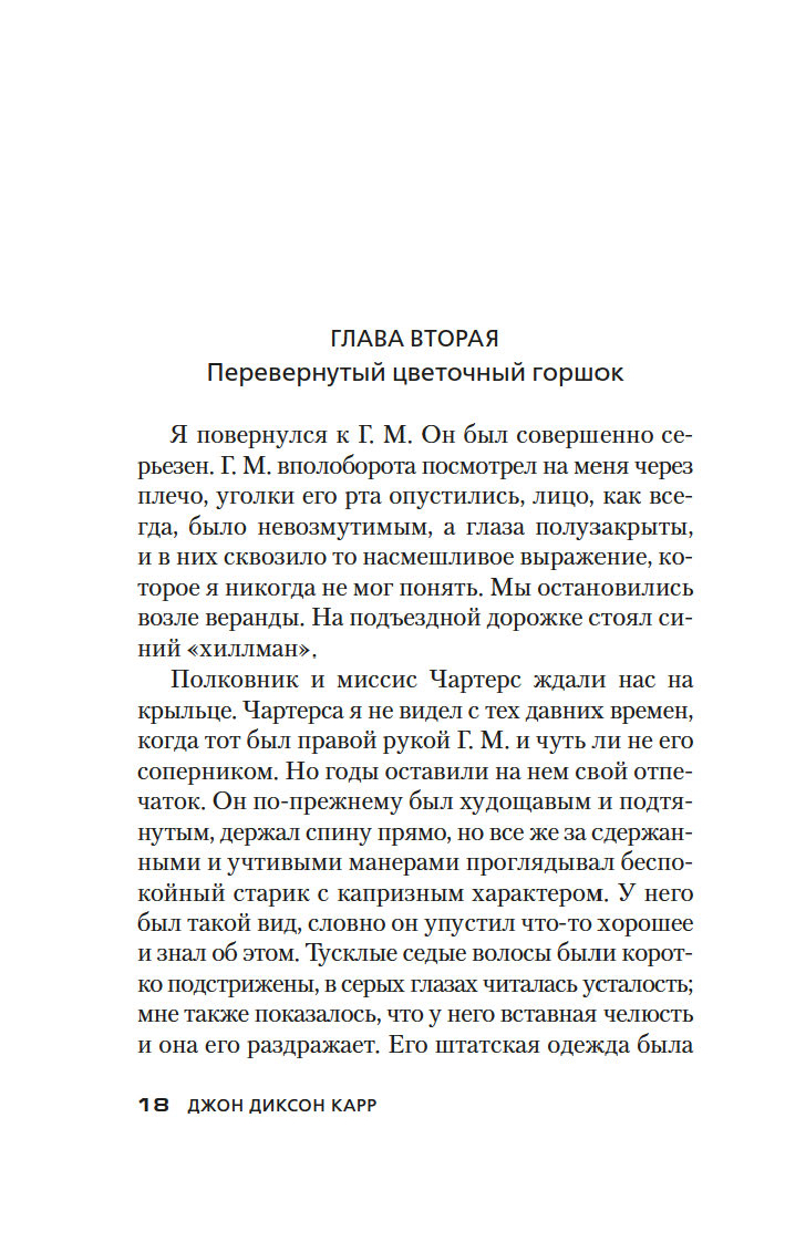 Золотой век детектива оставил немало звездных имен – А. Кристи, Г. К. Честертон, Г. Митчелл и др. В этой яркой плеяде Джон Диксон Карр (1906–1977) занимает самое почетное место. Убийство в запертой комнате, где нет места бешеным погоням и перестрелкам, а круг подозреваемых максимально ограничен, – излюбленный прием автора. Карр вовлекает читателя в сети ловко расставленных ловушек, обманных ходов и тонких намеков и предлагает принять участие в решении хитроумной головоломки, распутывая ниточки "невозможных" преступлений.