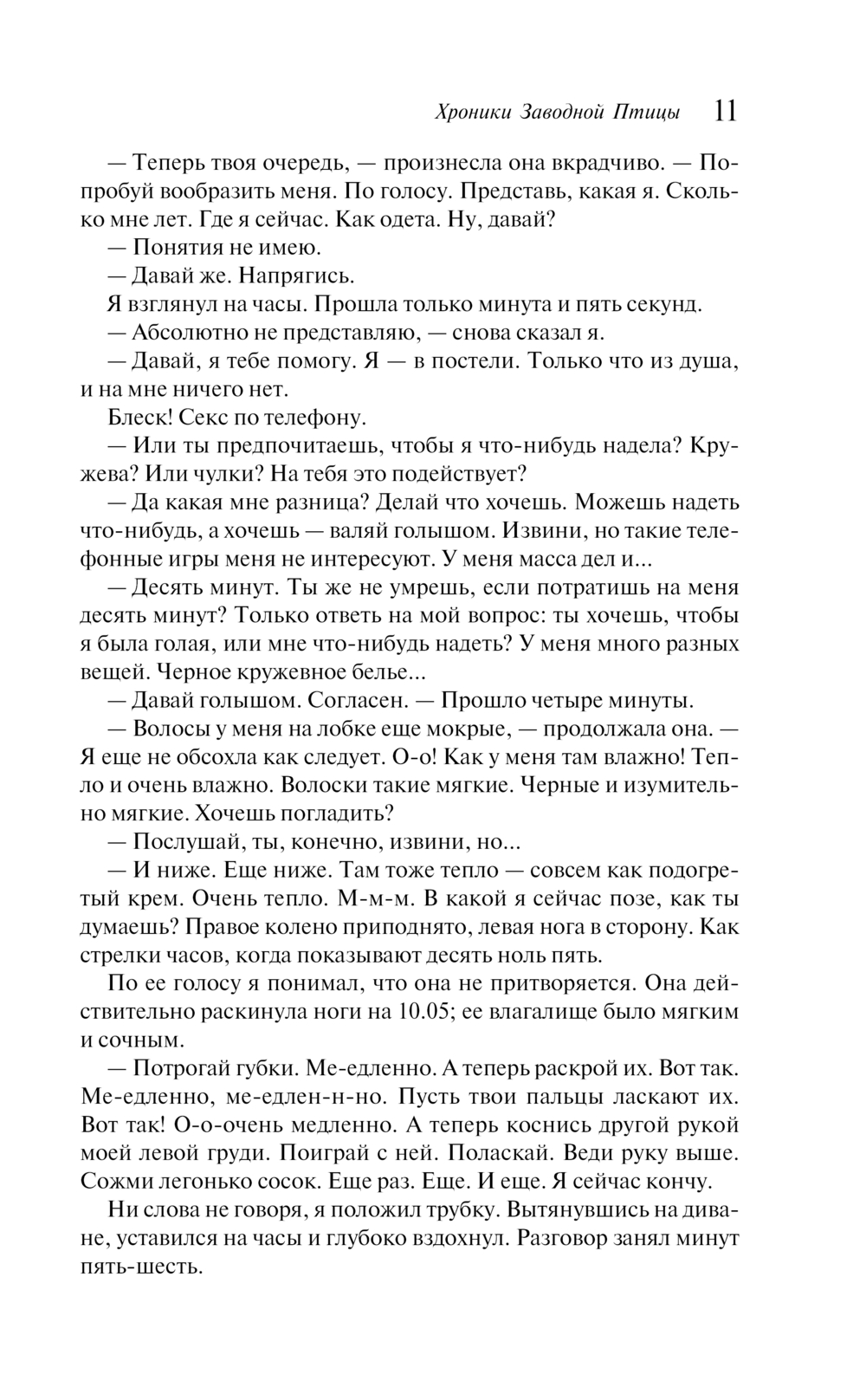 Роман "Хроники Заводной Птицы" Харуки Мураками – произведение поистине джойсовского масштаба. Ужас Второй мировой войны и судьба нашего современника в Японии, письма, мистические сны, воспоминания, журнальные статьи, закодированные файлы – цельное полотно, сотканное из невероятных событий, тонкой иронии и неподражаемой интонации Харуки Мураками.