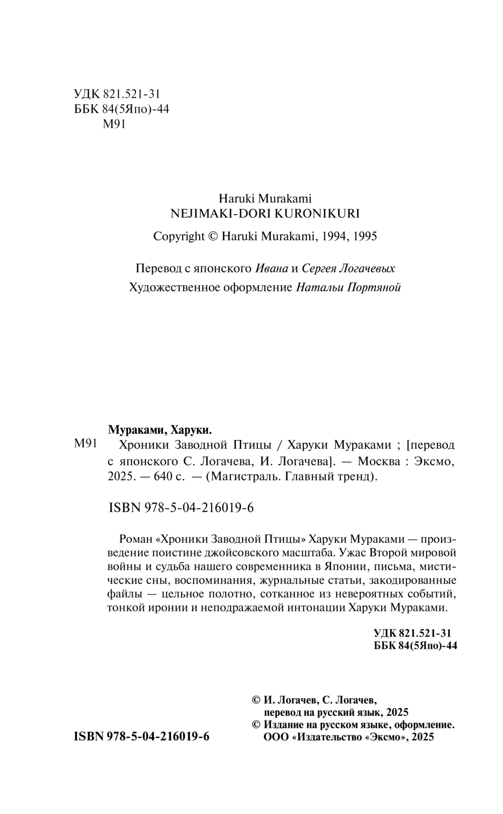 | Название в оригинале | The Wind Up Bird Chronicle |