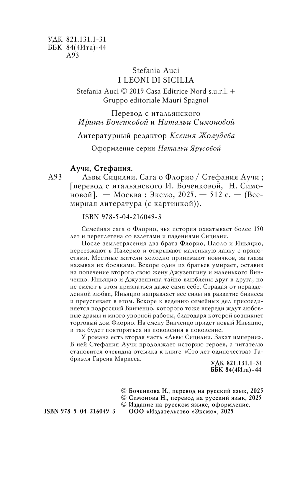 У романа есть вторая часть "Львы Сицилии. Закат империи". В ней Стефания Аучи продолжает историю героев, а читателю становится очевидна отсылка к книге "Сто лет одиночества" Габриэля Гарсиа Маркеса.