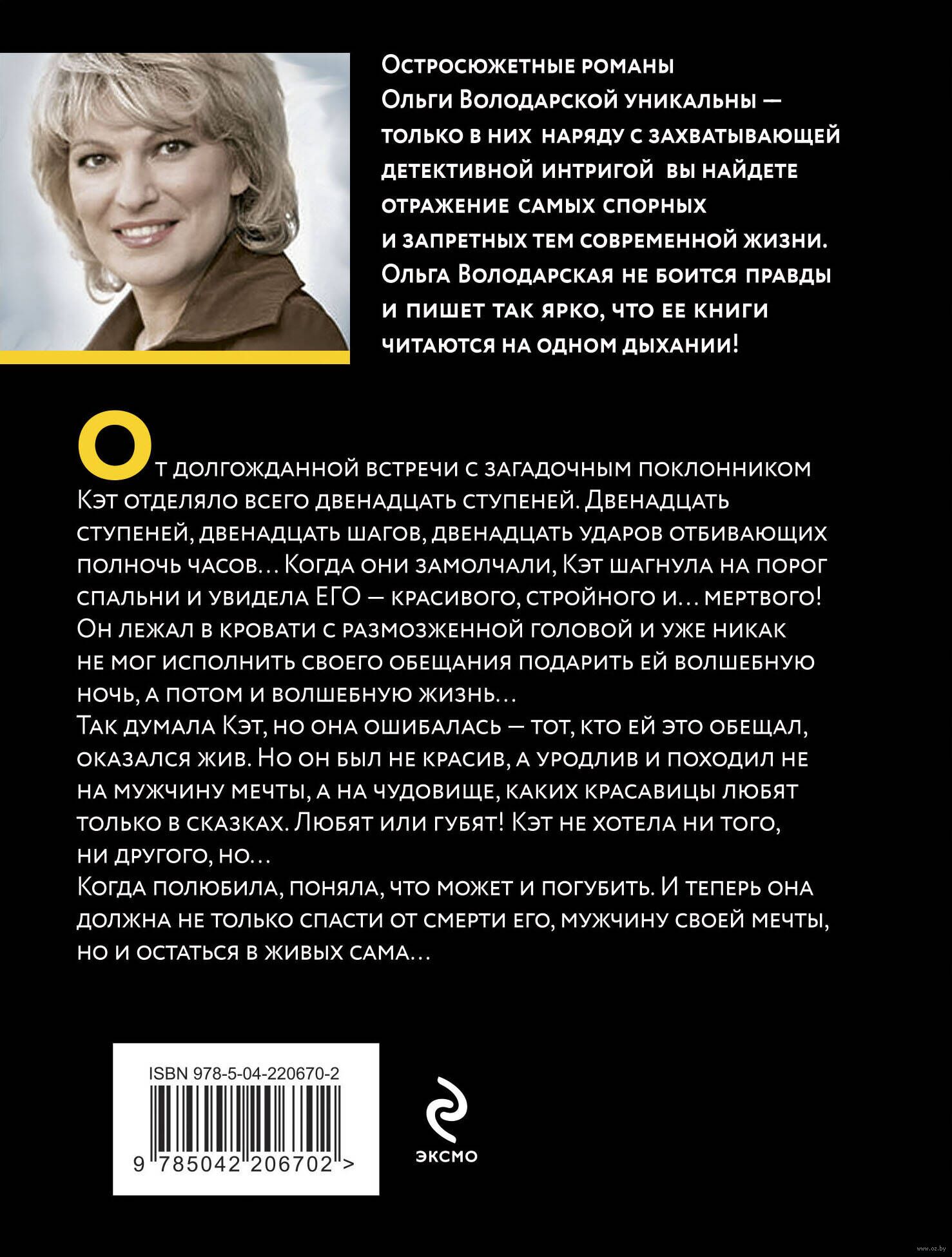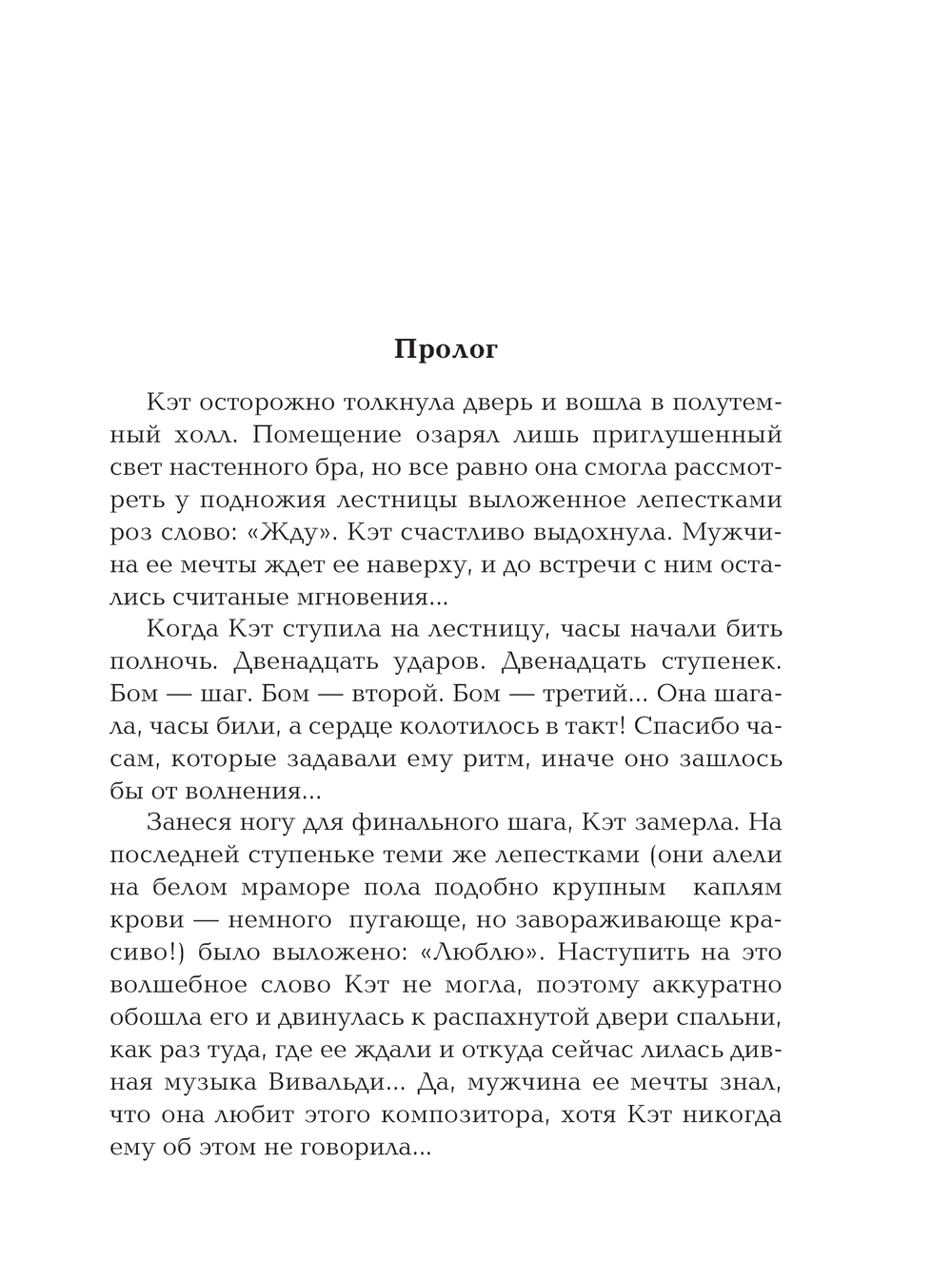 От долгожданной встречи с загадочным поклонником Кэт отделяло всего двенадцать ступеней. Двенадцать ступеней, двенадцать шагов, двенадцать ударов отбивающих полночь часов... Когда они замолчали, Кэт шагнула на порог спальни и увидела ЕГО – красивого, стройного и... мертвого! Он лежал в кровати с размозженной головой и уже никак не мог исполнить своего обещания подарить ей волшебную ночь, а потом и волшебную жизнь...