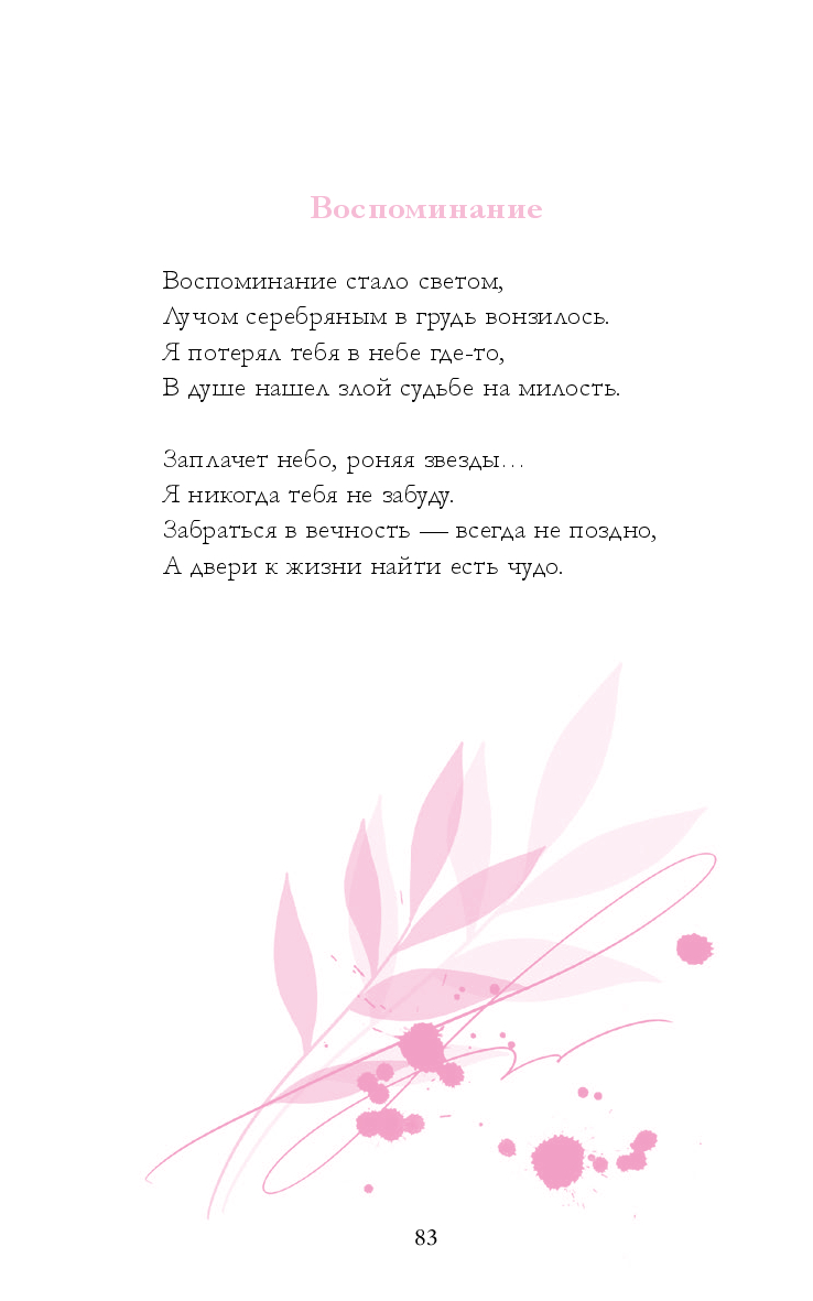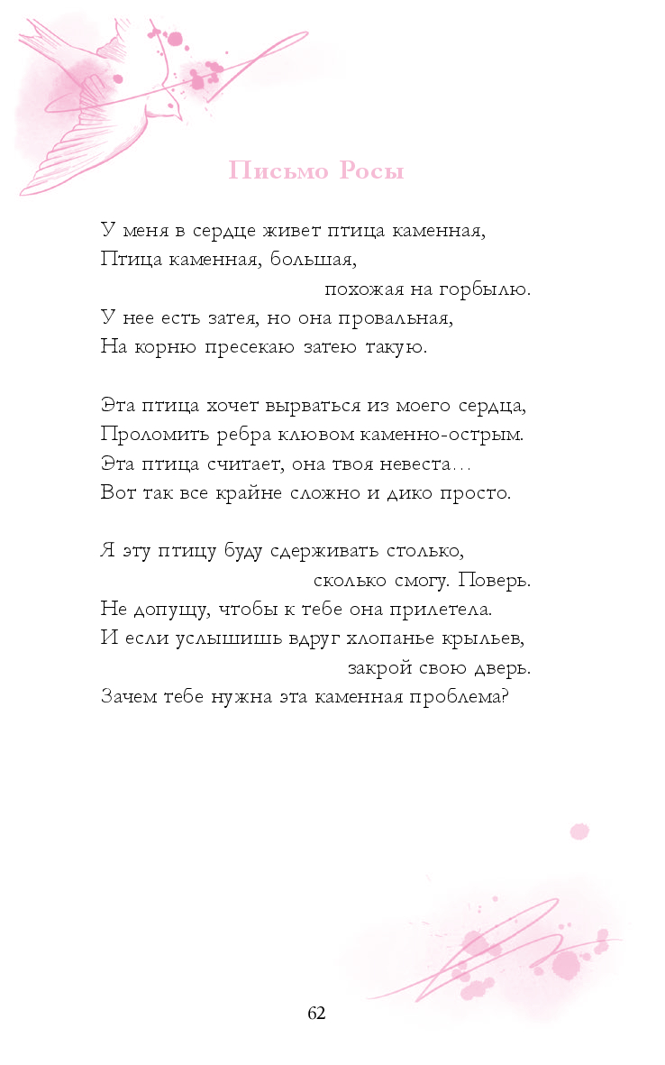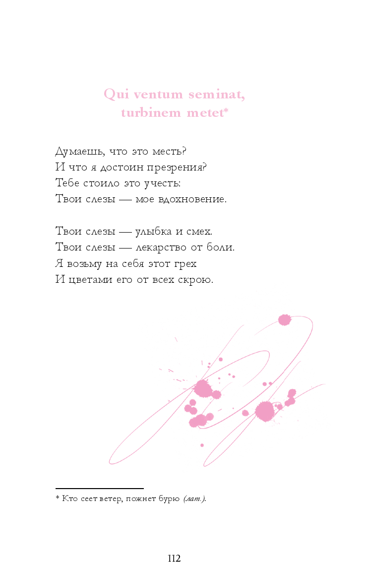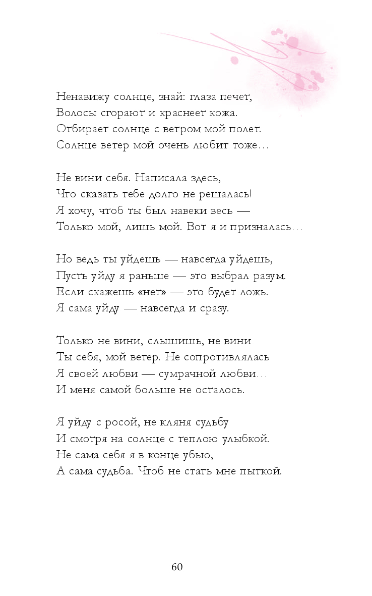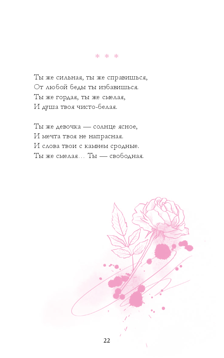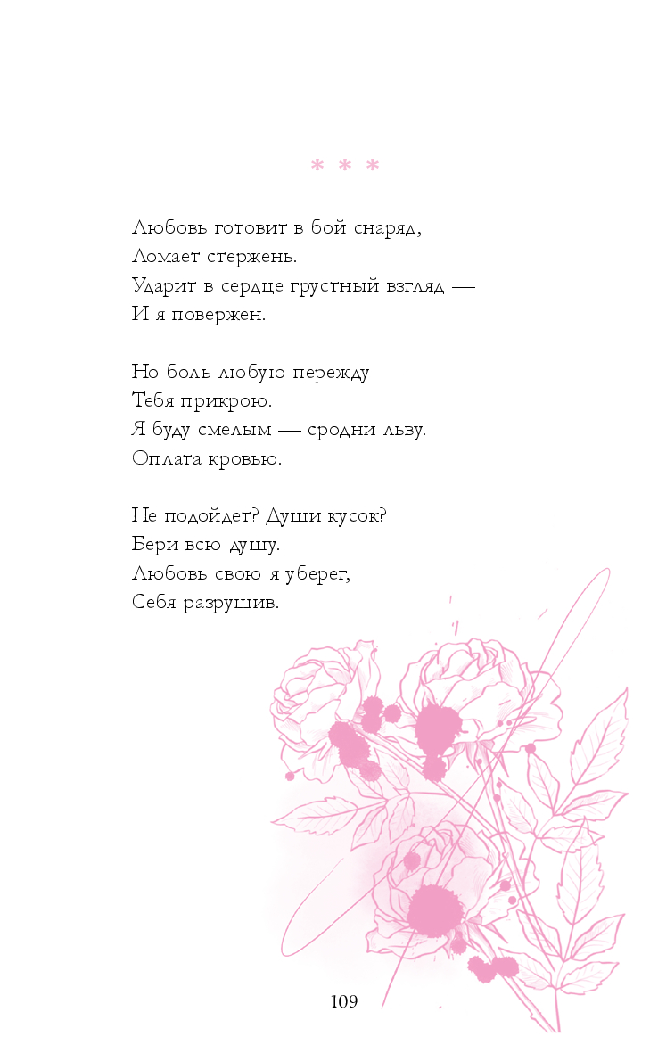 В первой части сборника ждут пронзительные стихи о любви, повседневных чудесах и тихих откровениях. Яркая, чувственная лирика Джейн полна тонких деталей, наблюдений и выверенных образов. Вторая часть – поэтическое отражение миров ее героев: от мятежной Тани Ведьминой до персонажей дилогии "Притворись моей парой", от нежной колыбельной "Нежеланной невесты" до резких слов "Поклонника" и даже строк по мотивам неоконченной книги "На подмостках волшебства".
