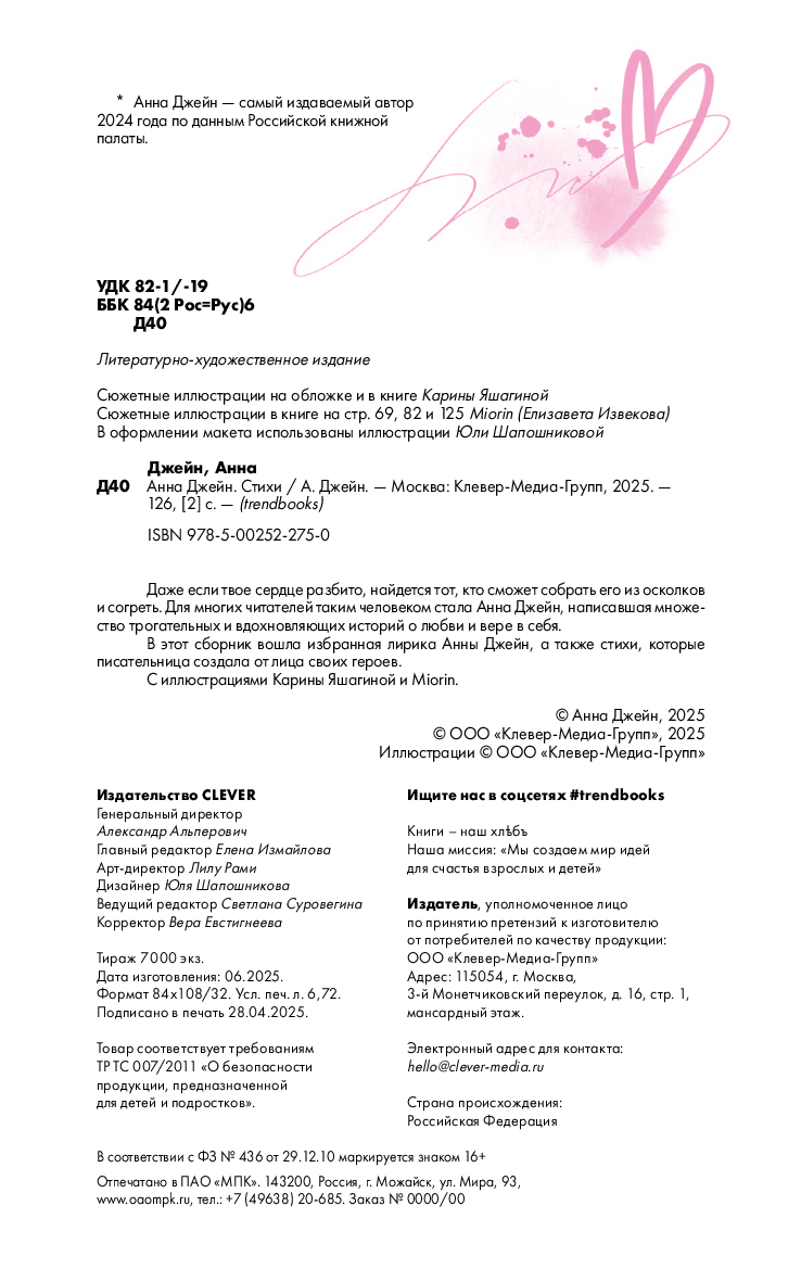 "Анна Джейн. Стихи" – долгожданный сборник лирики королевы Young Adult и одной из самых популярных писательниц в России. Читателей ждут избранные стихи писательницы, а также те, что она создала от лица героев своих знаменитых романов.