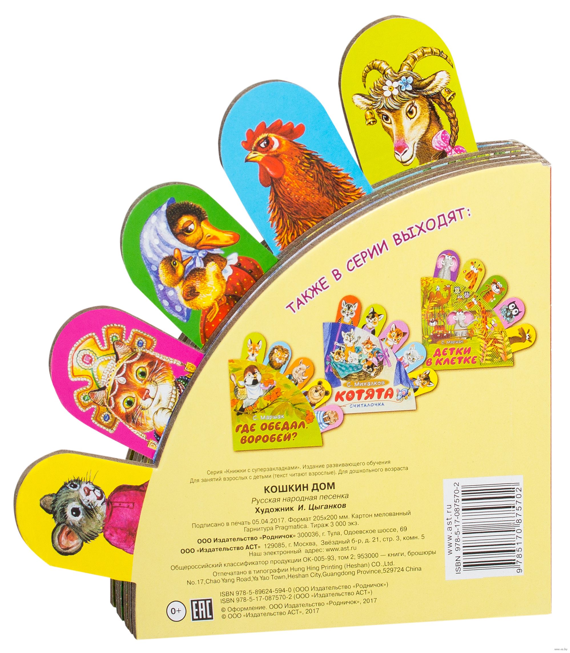 Русская народная песенка, любимая малышами. Герои песенки наглядно представлены как на постраничных иллюстрациях, так и на специальных закладках.