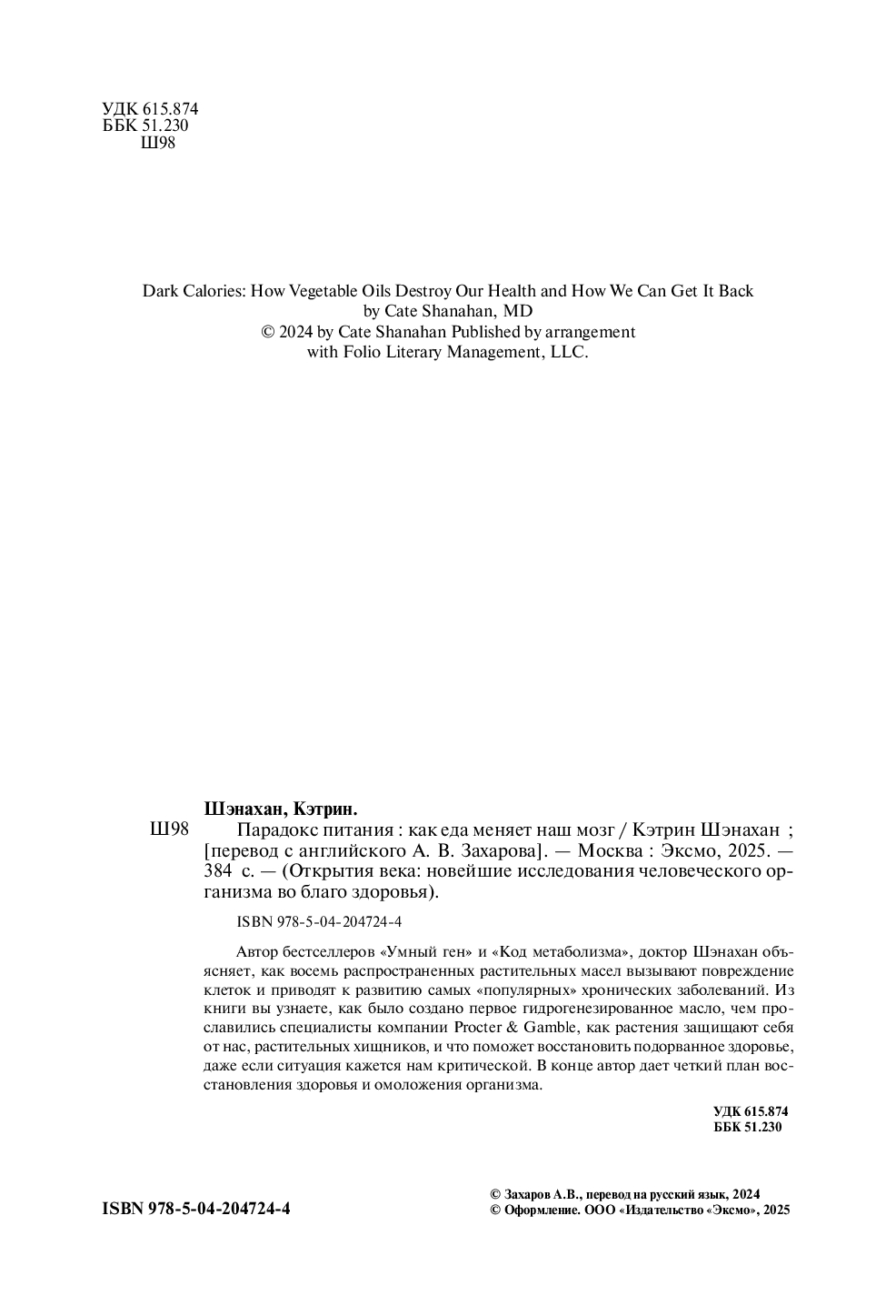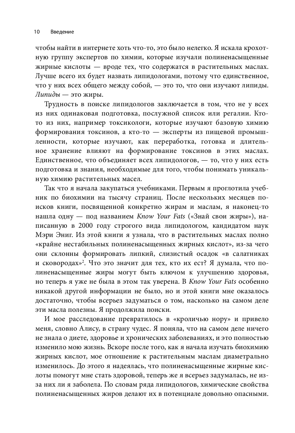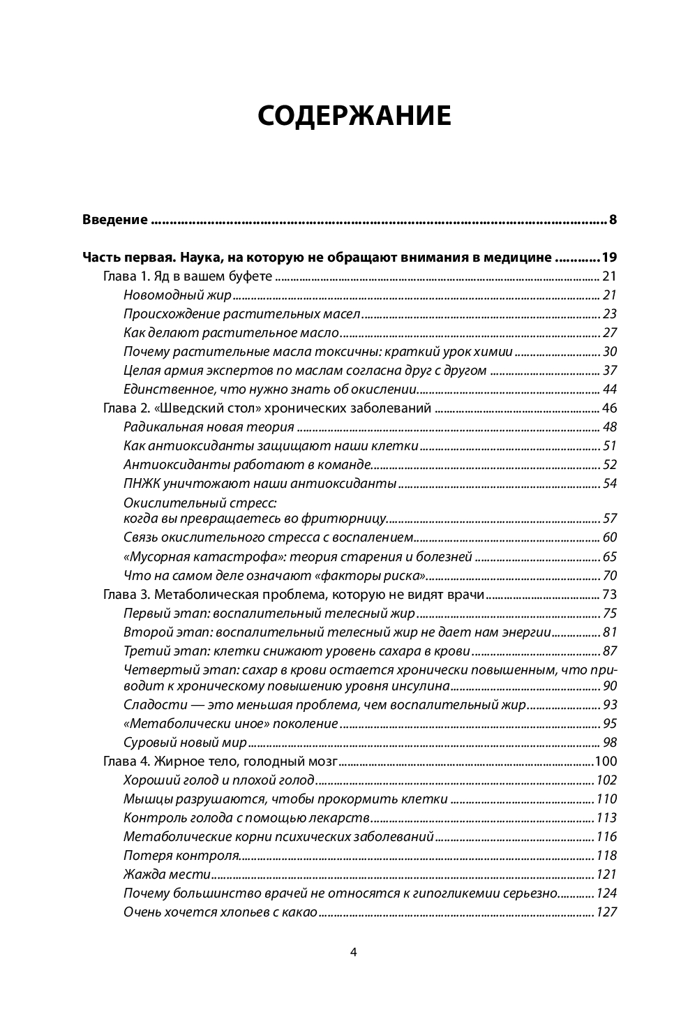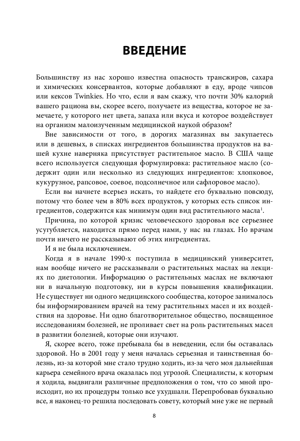 Автор бестселлеров "Умный ген" и "Код метаболизма", доктор Шэнахан объясняет, как восемь распространенных растительных масел вызывают повреждение клеток и приводят к развитию самых "популярных" хронических заболеваний. Из книги вы узнаете, как было создано первое гидрогенезированное масло, чем прославились специалисты компании Procter & Gamble, как растения защищают себя от нас, растительных хищников, и что поможет восстановить подорванное здоровье, даже если ситуация кажется нам критической. В конце автор дает четкий план восстановления здоровья и омоложения организма.