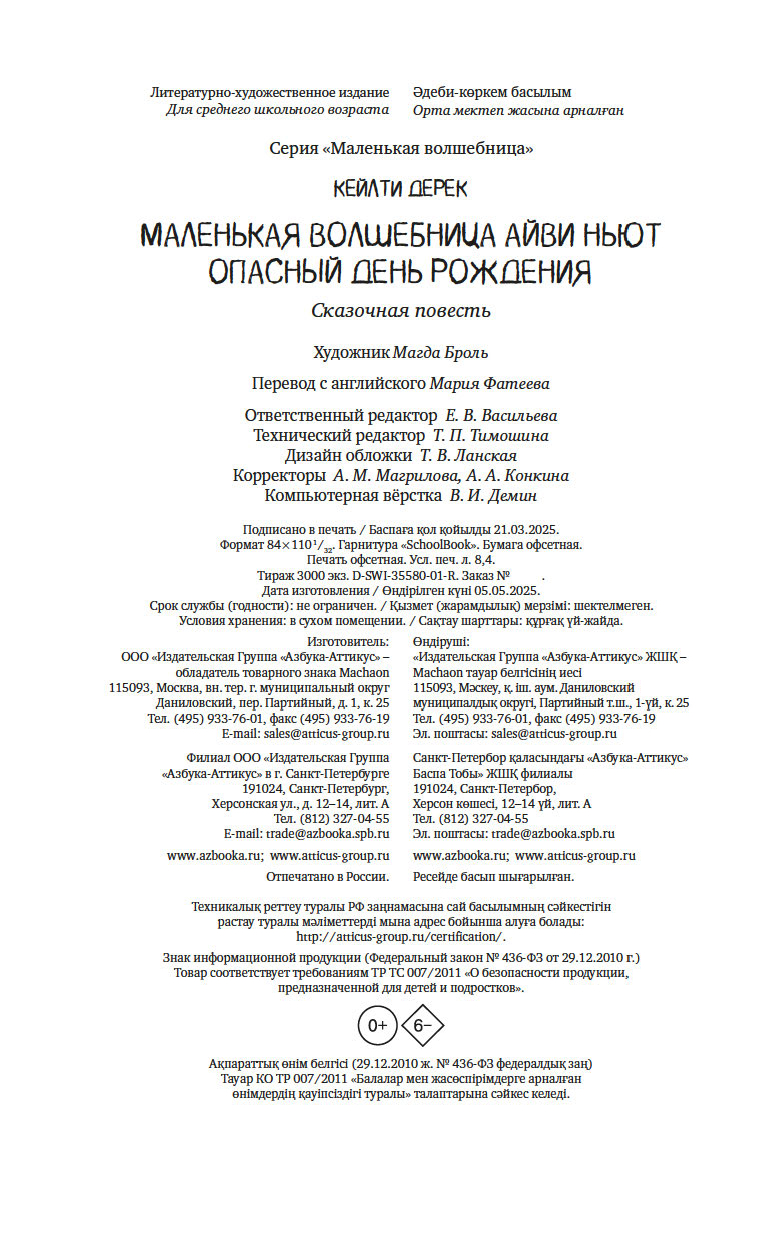 | Изготовитель | ЗАО "Издательская группа "Махаон". РФ, г. Москва, 2-й Хорошевский пр-д, 7/1 |