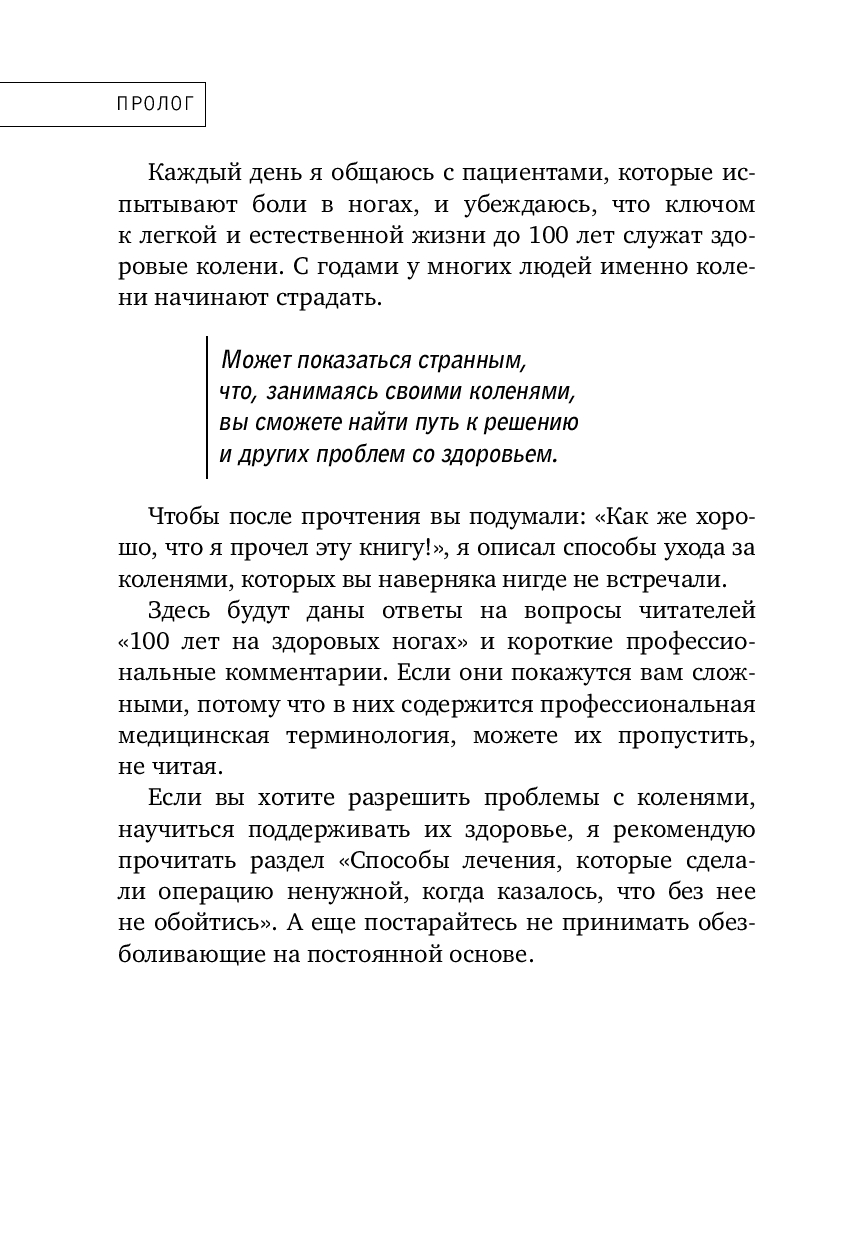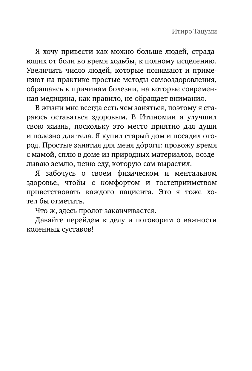 Хотите наслаждаться активной жизнью до глубокой старости и никогда не страдать от болей в коленях и стопах? Тогда эта книга для вас! Японская методика, разработанная известным хирургом-ортопедом Итиро Тацуми, помогает сохранить здоровье коленных суставов и избавиться от боли без хирургического вмешательства.
