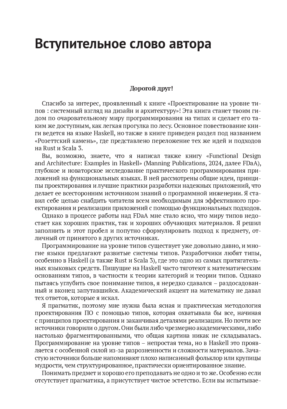 Книга предлагает подходы и паттерны для нетривиального кода, где все выражено через типы: бизнес-логика, предметно-ориентированные языки, механизмы корректности и расширяемости.