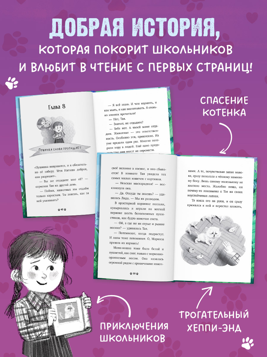 Восьмилетняя Тая больше всего на свете хотела завести котенка. На уроках она мечтала, как он будет тыкаться теплой мордочкой ей в руку, громко мурчать и пить молоко из миски. Кажется, и мама Таи уже не против, и тот самый котенок мечты найден, но… Судьба-злодейка распоряжается иначе: Пушинка сначала попадает в руки нерадивых хозяев, а затем к безумной старушке.