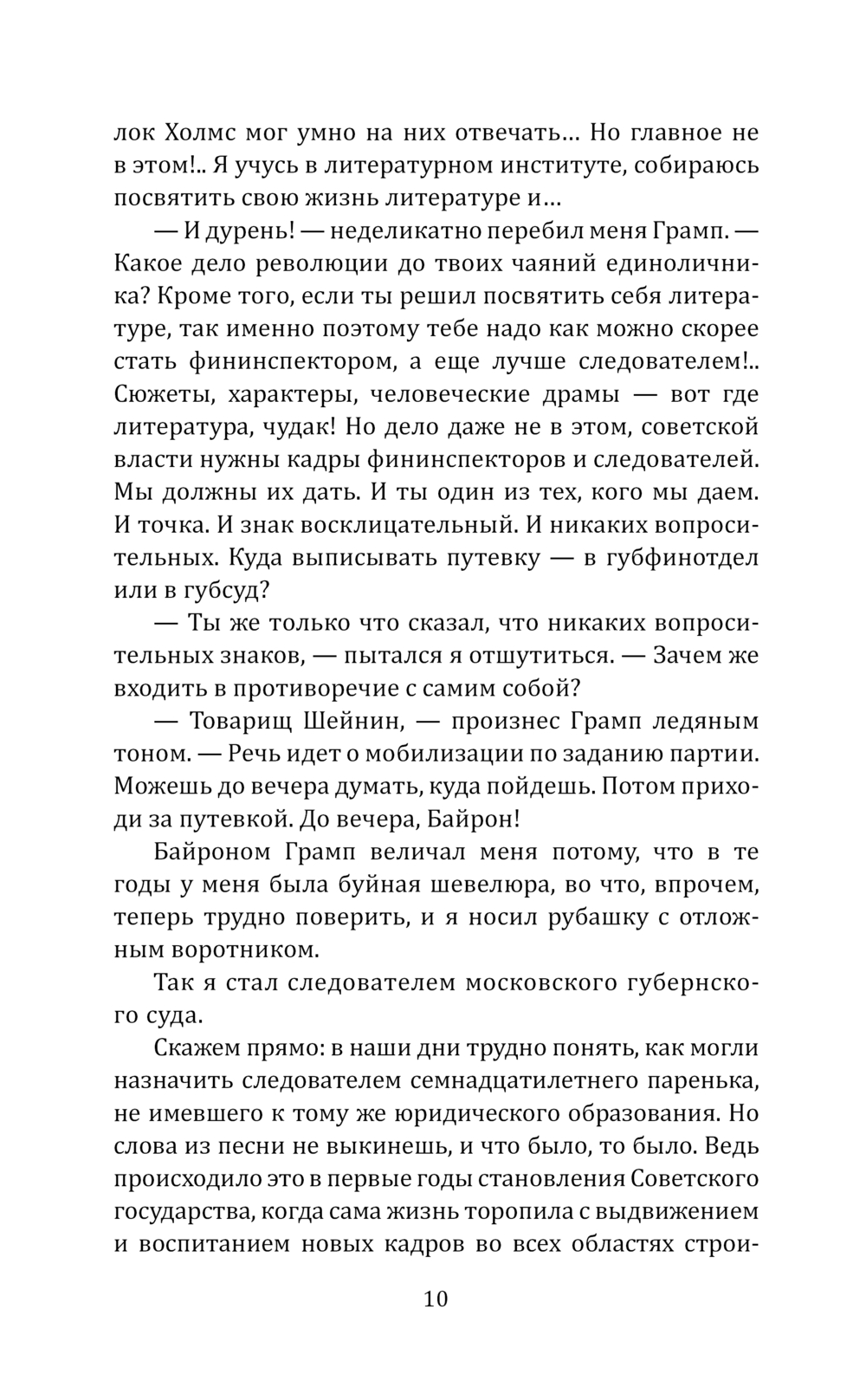В 1921 году пятнадцатилетний журналист провинциальной газеты Лев Шейнин поступил в московский Высший литературно-художественный институт. Но в феврале 1923 года по комсомольскому распределению был направлен на работу в Прокуратуру СССР. В 1927 году в газете "Известия" был опубликован первый рассказ Льва Шейнина "Суд идет".
