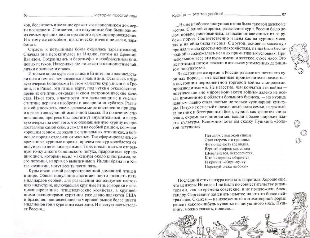А еще – в чем отличие студня от холодца, а холодца от заливного, и с чего это вдруг индейка родом из Америки стала по всему миру зваться "турецкой птицей", и где родина яблок, и почему осетровых на Руси называли "красной рыбой", и что означает быть с кем-то "в одной каше", и кто в Древнем Египте ел хлеб с миндалем, и почему монахам-францисканцам запрещали употреблять шоколад, и что говорят законы царя Хаммурапи о ценах на пиво, и почему парное мясо – не самое лучшее, и как сварить яйцо с помощью пращи...