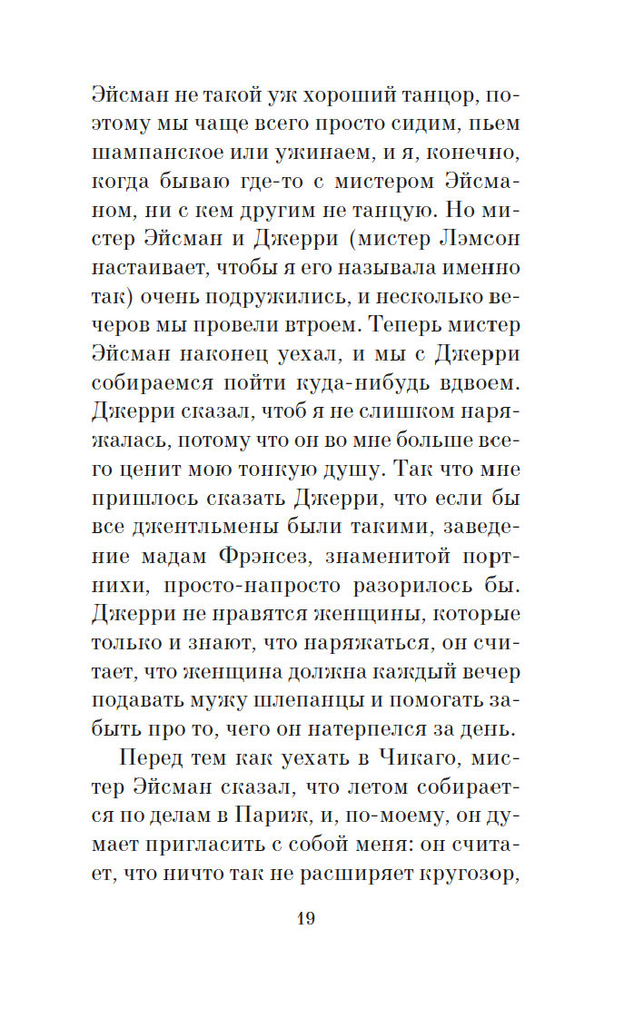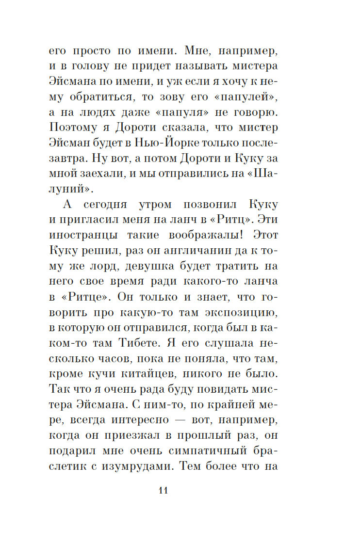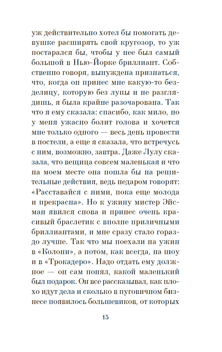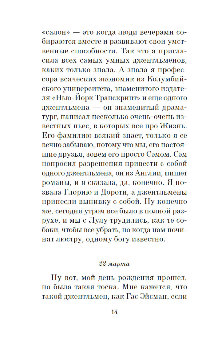 Для настоящего джентльмена встреча с блондинкой никогда не проходит даром – в прямом и переносном смысле слова! В этом знаменитая сценаристка и писательница Анита Лус (1888–1981) не раз убеждалась на собственном опыте: по ее признанию, себя она ассоциировала с брюнеткой Дороти – умудренной жизнью подругой очаровательной блондинки Лорелеи Ли. Замечательная рассказчица, Лус начала публиковать небольшие истории из жизни Лорелеи в "Harper’s Bazaar" в 1925 году, и благодаря их популярности тираж журнала вырос в четыре раза. Книга "Джентльмены предпочитают блондинок" и ее продолжение "Но женятся джентльмены на брюнетках" (1927) имели оглушительный успех, о чем свидетельствовало и появление музыкальной бродвейской версии произведения. А в 1953 году появился фильм с незабываемой Мэрилин Монро в главной роли. Ее героиня соткана из противоречий: она очаровательная и эгоистичная, глупая и рассудительная, откровенная и лживая – словом, настоящая блондинка…