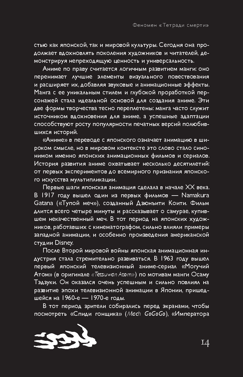 Вы держите в руках уникальное исследование феномена одной из самых известных манг XXI века! Как история о справедливости, власти и морали повлияла на мировую культуру? Почему Тетрадь смерти остается актуальной спустя годы после выхода? Эта книга расскажет о создании и философии манги, её адаптациях – от аниме до театральных постановок, а также о культурном наследии, которое вдохновило миллионы людей по всему миру. Вы узнаете, как Тетрадь смерти повлияла на кино, литературу, моду и фанатские движения, а также какое будущее ждет японскую анимацию в цифровую эпоху.