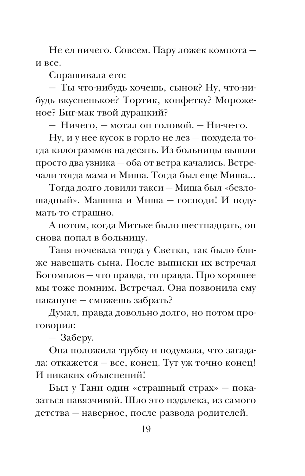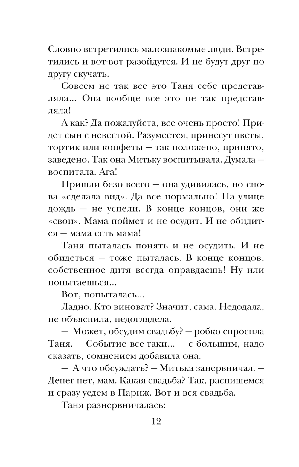 Таня родила сына в восемнадцать. Когда ее сверстницы бегали на свидания, дискотеки и в кафе, меняли кавалеров и строили планы на будущее, она стирала пеленки, варила кашки и ходила гулять в ближайший к дому сквер с коляской. Все вокруг считали ее ненормальной, а Таня не жалела ни о чем – впервые в жизни она чувствовала себя нужной.