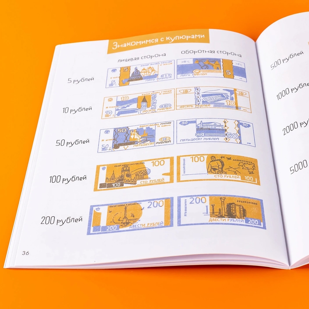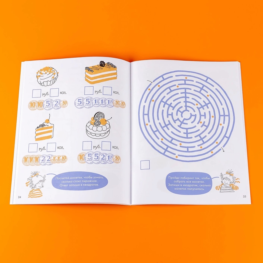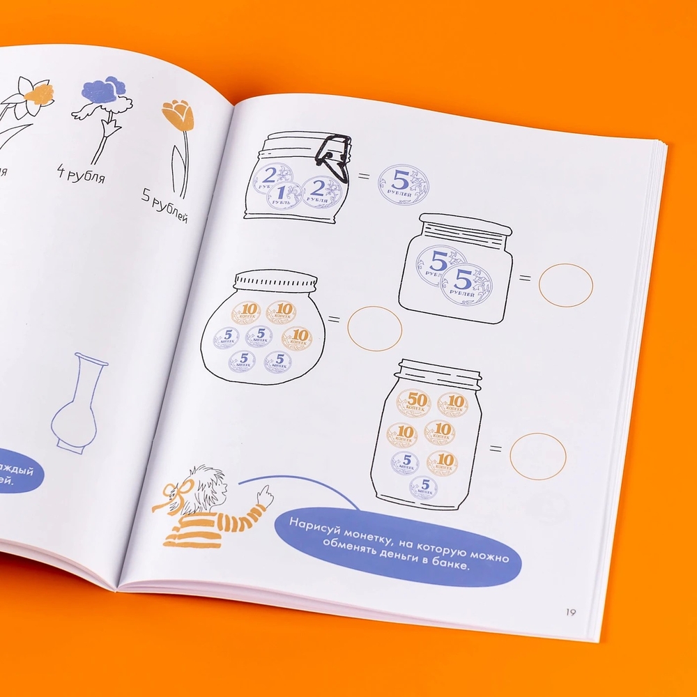 Какие бывают монеты и купюры? Чем они отличаются друг от друга? Сколько копеек в одном рубле? Как посчитать сдачу? Ваш малыш легко запомнит все купюры и монеты и научится их считать с красочными головоломками, находилками и раскрасками.